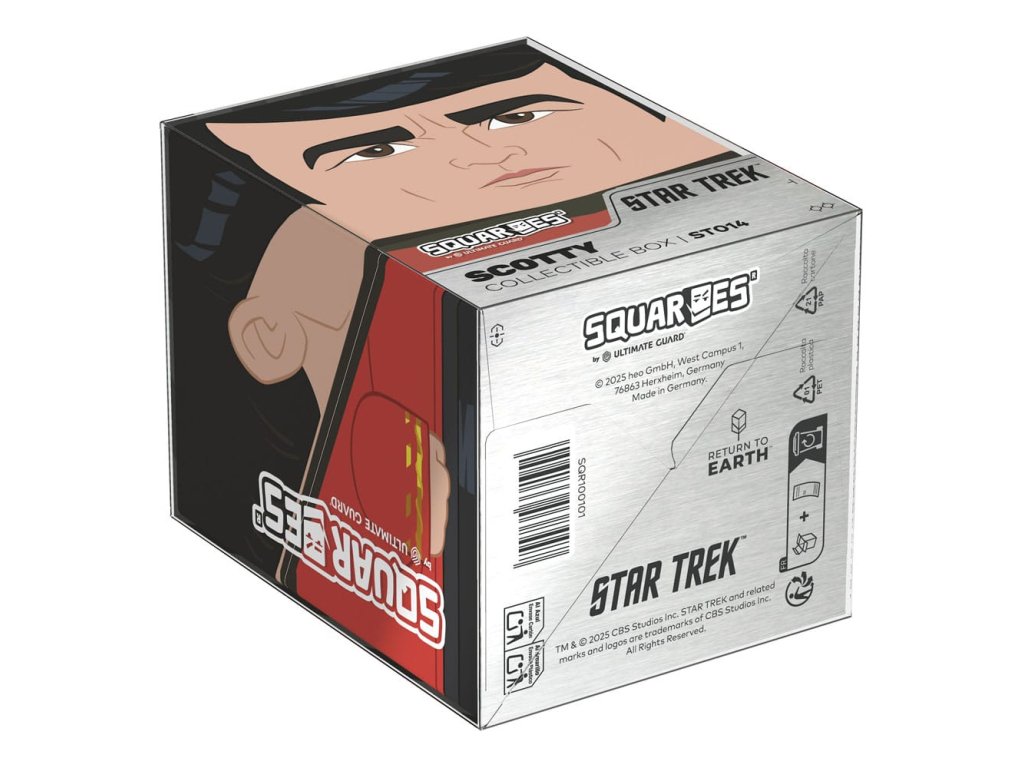Gyűjtői doboz TCG csomagok, társasjáték-kiegészítők és/vagy gyűjtemények tárolására. A Star Trek: The Original Series kiadásából származó Scotty Squaroe akár 100 kártyát is befogad dupla védőhüvelyben, ha pakli dobozként használod. A Squaroe 78%-ban megújuló nyersanyagokból készül, és tökéletesen illeszkedik a külön kapható gyűjtőtokba.