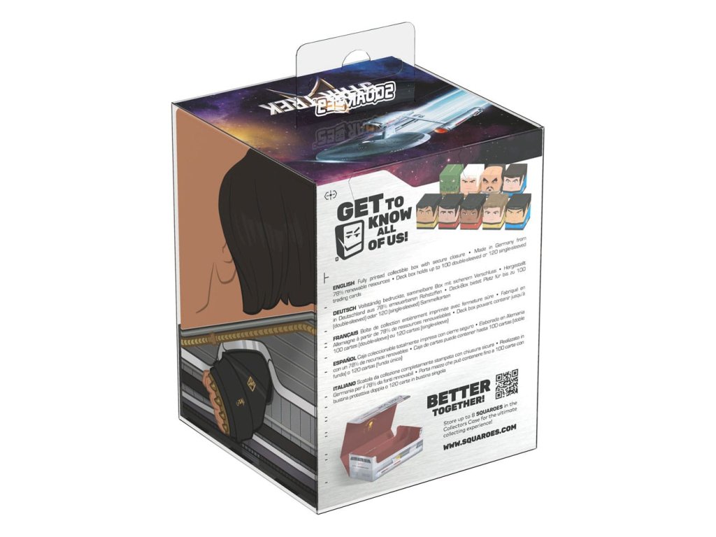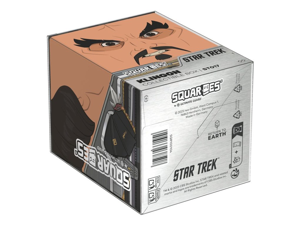 Gyűjtői doboz TCG csomagok, társasjáték-kiegészítők és/vagy gyűjtemények tárolására. A Klingon Squaroe a Star Trek: The Original Series kiadásból akár 100 kártya is elfér dupla védőhüvelyben, ha paklis dobozként használod. A Squaroe 78%-ban megújuló nyersanyagokból készül, és tökéletesen illeszkedik a külön kapható gyűjtőtokba.