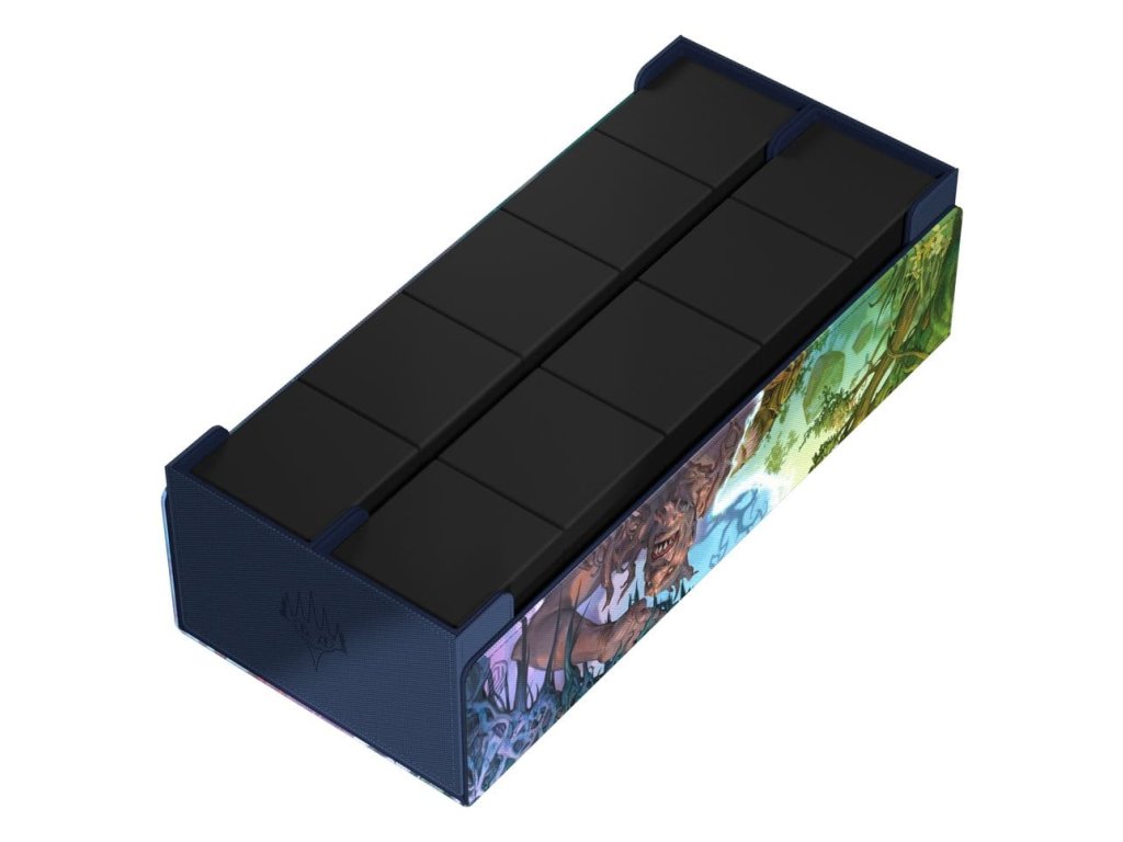 Az Ultimate Guard's Arkhive 1000+ Xenoskin a Magic: The Gathering "Lorwyn Eclipsed" készlet hivatalosan licencelt grafikájával a tökéletes MTG kártyadoboz több pakli doboz és/vagy nagy mennyiségű egyedi kártya tárolására és szállítására. A teljesen levehető fedél mindkét oldalon erős mágneses zárral, valamint az Ultimate Guard bevált ZnapClaw mechanizmusával van rögzítve. Ráadásul a tartós Xenoskin fedél és a mikroszálas belső bélés kiváló védelmet nyújt az Ultimate Guard* akár 1125 dupla csomagolású kártyának, tíz Boulder 100+ paklis doboznak vagy hat Boulder 133+ paklis doboznak. Az Arkhive 1000+ Xenoskin kapacitása miatt az Arkhive 1000+ paklisdoboz ideális a kockák tárolására is.