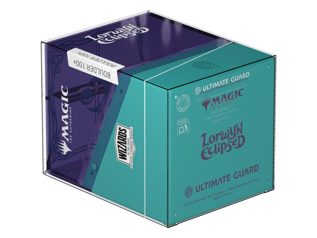 Az Ultimate Guard's Boulder 100+ egy tartós és megbízható Magic: The Gathering kártyadoboz a "Lorwyn Eclipsed" készlet hivatalosan engedélyezett illusztrációjával. A Boulder 100+ biztonságos záródása ellenére könnyen és kényelmesen nyitható, és 100 darab, dupla csomagolású Ultimate Guard* kártyát tartalmaz, így ideális doboz minden Magic formátumhoz (Commander/EDH, Modern, Standard stb.). A Bouldert úgy tervezték, hogy minden nagy kapacitású Ultimate Guard-dobozzal kombinálható legyen, különösen jól illeszkedik az Arkhive, Superhive és Flip'n'Tray dobozokba.