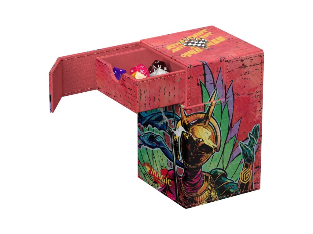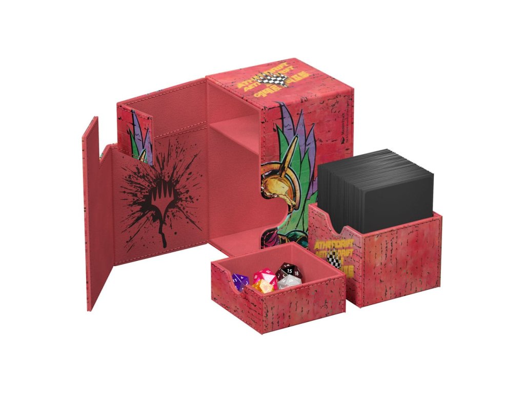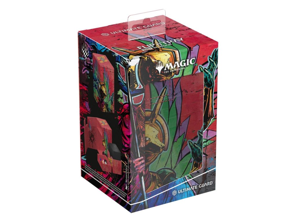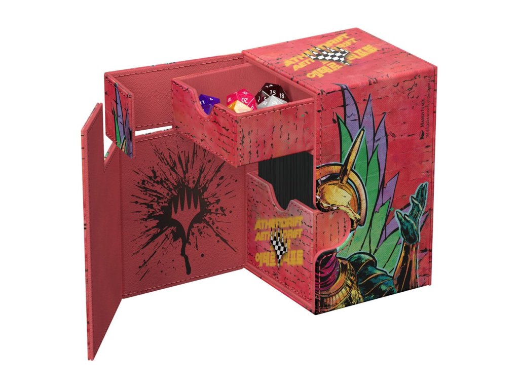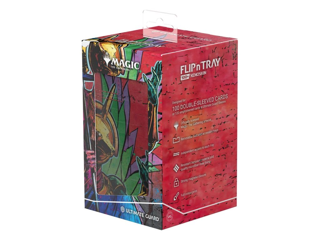 A Flip'n'Tray 100+ Xenoskin egy kiváló minőségű TCG kártyadoboz, amely prémium kártyavédelmet nyújt tartós Xenoskin anyaggal, mikroszálas belső béléssel és erős mágneses zárással. A kártyadoboz integrált és kivehető, önállóan is hozzáférhető kocka vezetővel rendelkezik, és teljes színben nyomtatott, hivatalosan licencelt részekkel a hamarosan megjelenő Magic: The Gathering 'Aetherdrift' készletből. A Flip'n'Tray 100+ Xenoskin 100 dupla vagy 120 szimpla kártyára van optimalizálva Ultimate Guard hüvelyben.