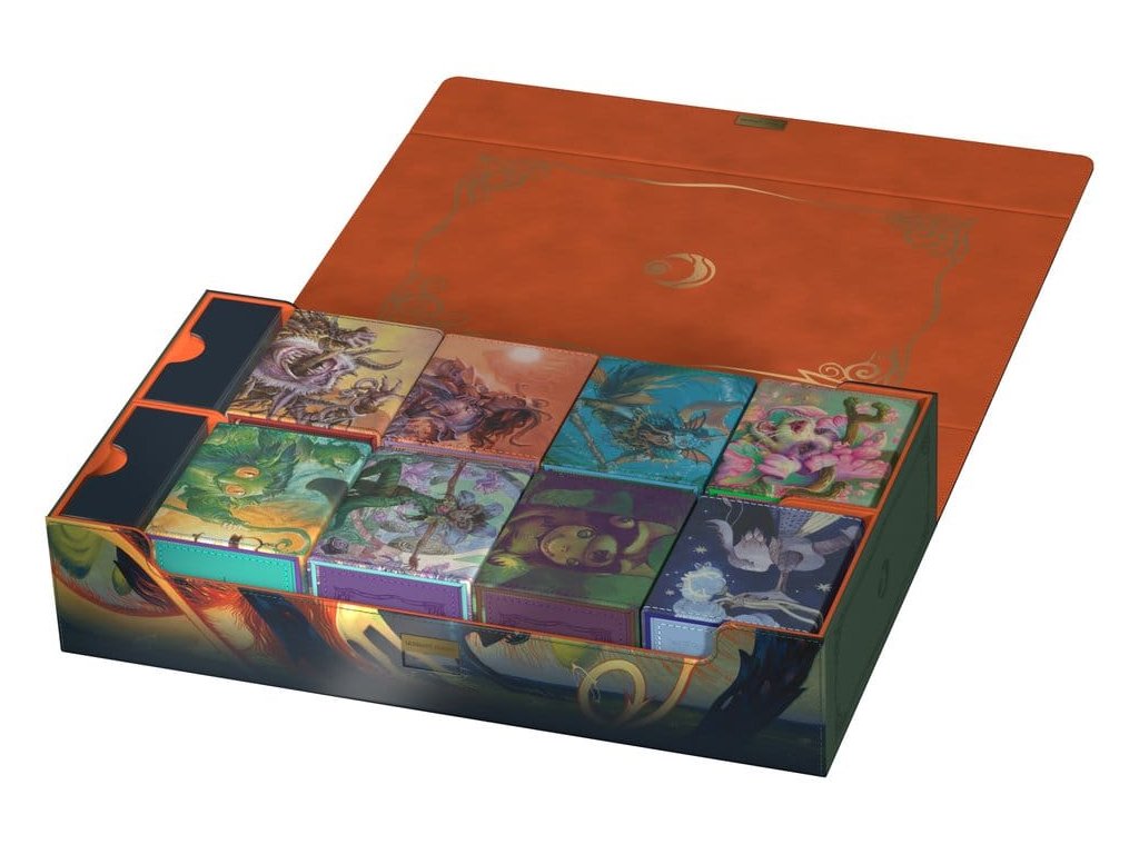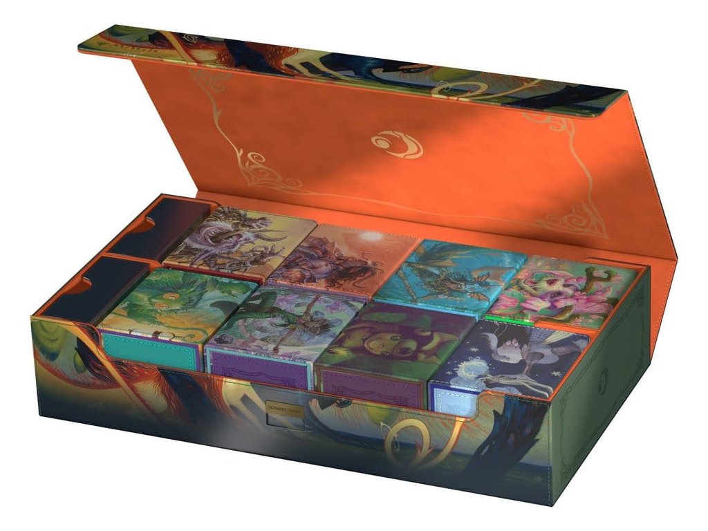 Az Ultimate Guard Omnihive 1000+ Xenoskin a 'Lorwyn Eclipsed' Magic: The Gathering szett hivatalosan licencelt grafikájával a végső doboz az MTG paklik, kártyák és kiegészítők tömeges tárolására. Úgy tervezték, hogy egyszerre több MTG doboz pakli és/vagy játékszőnyeg tárolására alkalmas legyen, két rugalmasan elhelyezhető és összecsukható mágneses kockatálcával rendelkezik két rekesz felett, tartós Xenoskin anyaggal, kiváló minőségű mikroszálas belső béléssel, erős mágneses zárással és az Ultimate Guard bevált ZnapClaw mechanizmusával. A nyolc Sidewinder 100+ paklis doboz vagy hat Sidewinder 133+ paklis doboz befogadóképességével az Omnihive 1000+ Xenoskin akár 1000, Ultimate Guard* fóliába csomagolt, dupla csomagolású kártyát is képes tárolni, így tökéletes tárolódoboz a kockák számára.