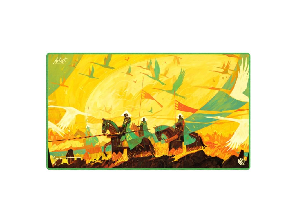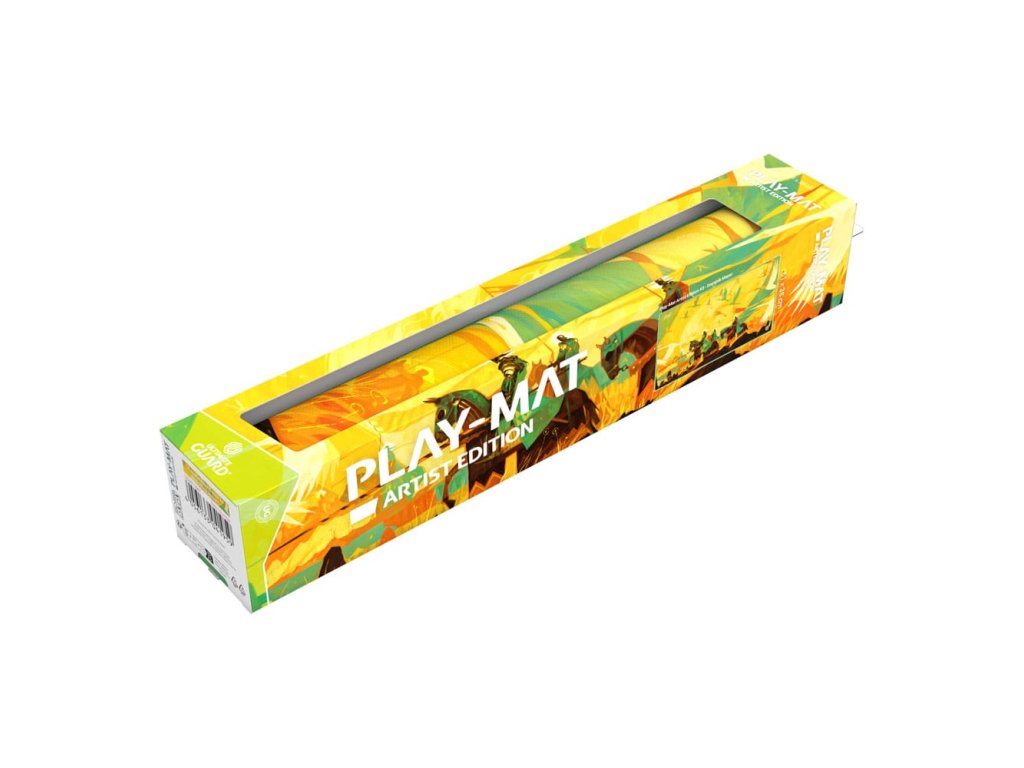 Az Ultimate Guard's Artist Edition #3Play-Mat a Magic: The Gathering művész Dominic Mayer művészeti alkotásával ellátott, 61 x 35 cm-es, kiváló minőségű játszószőnyeg, amely fokozza a játékélményt, és megvédi a TCG kártyákat, tokokat és kiegészítőket a karcolásoktól, kopástól és szennyeződésektől. A 2 mm vastag, puhán párnázott szőnyeg természetes gumiból készült, és a megbízható csúszásmentes aljjal és prémium minőségű puha szövetfelülettel rendelkezik. A párna varrott szélei megakadályozzák a foszlást, és hosszú élettartamot biztosítanak.