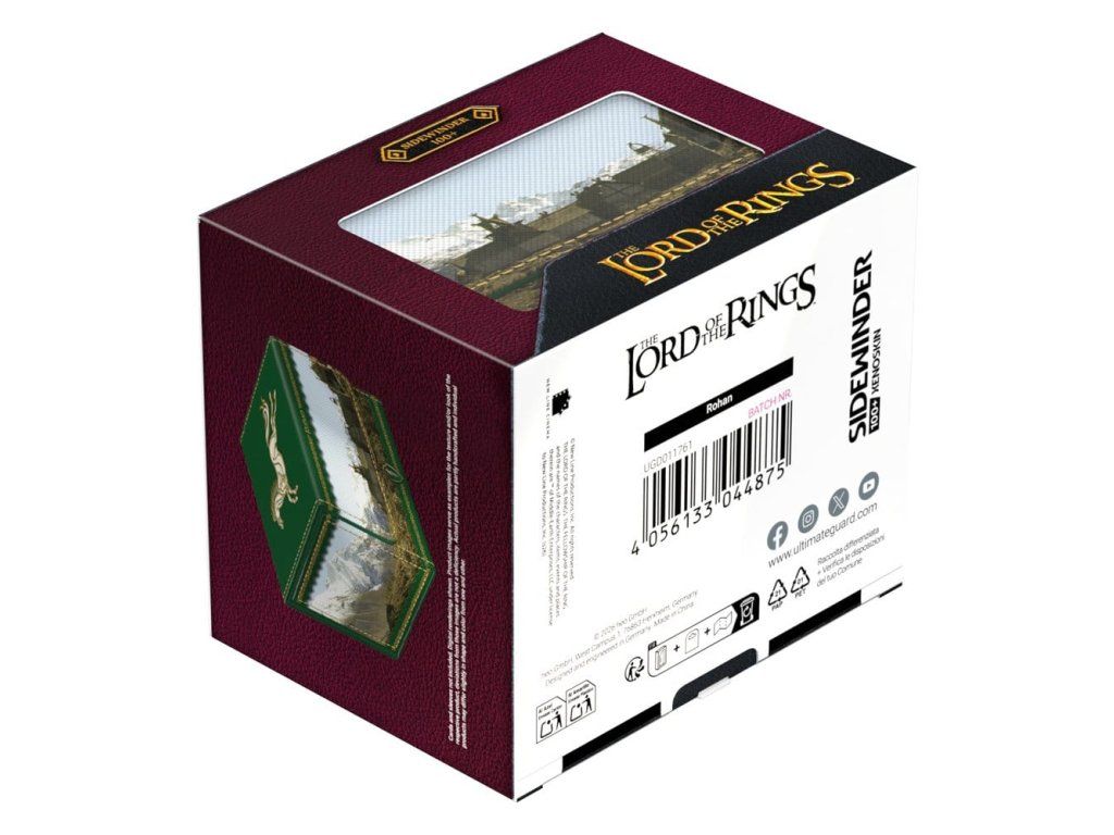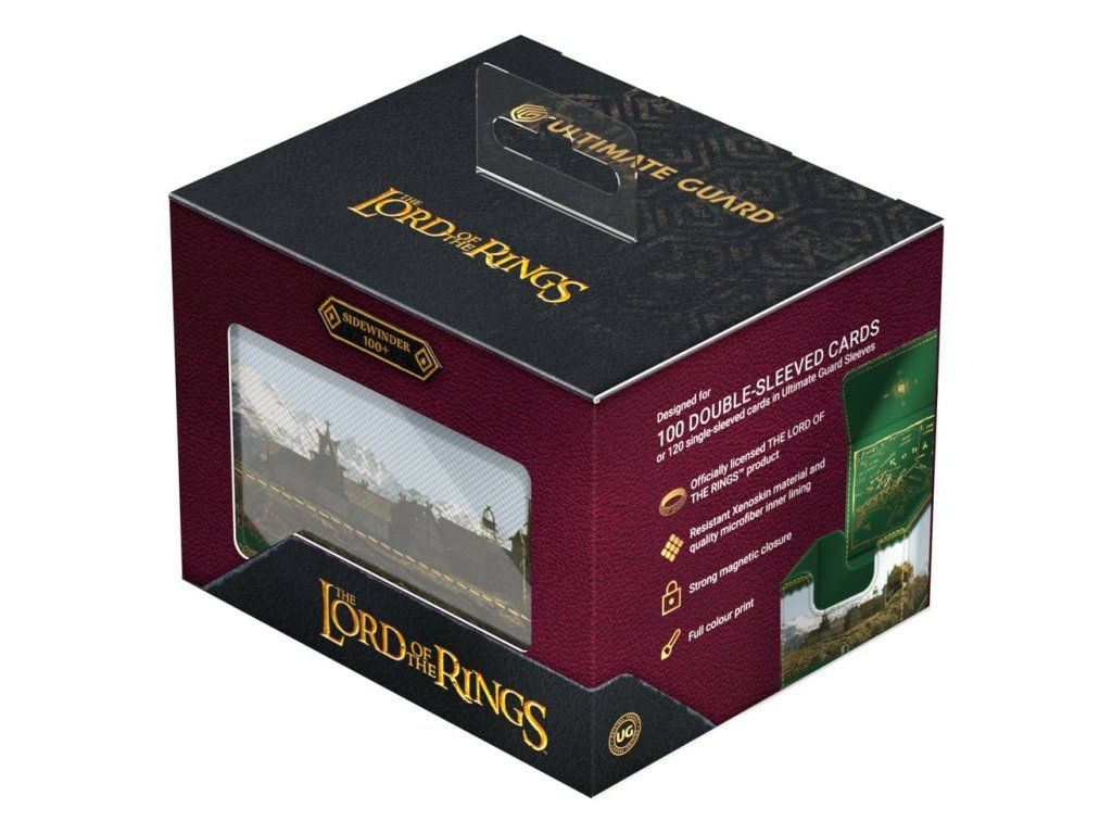 A Sidewinder 100+ Xenoskin egy kiváló minőségű TCG paklis doboz, amely tartós Xenoskin anyaggal, mikroszálas belső béléssel és erős mágneses záródással prémium kártyavédelmet nyújt, miközben könnyű és kényelmes hozzáférést biztosít a benne lévő kártyákhoz. Az Ultimate Guard hivatalos kiadású Gyűrűk Ura™ "Középfölde helyszínei" paklis dobozai teljes színben nyomtatottak, és 100 darab Ultimate Guard tokban lévő, dupla csomagolású kártya tárolására optimalizáltak.