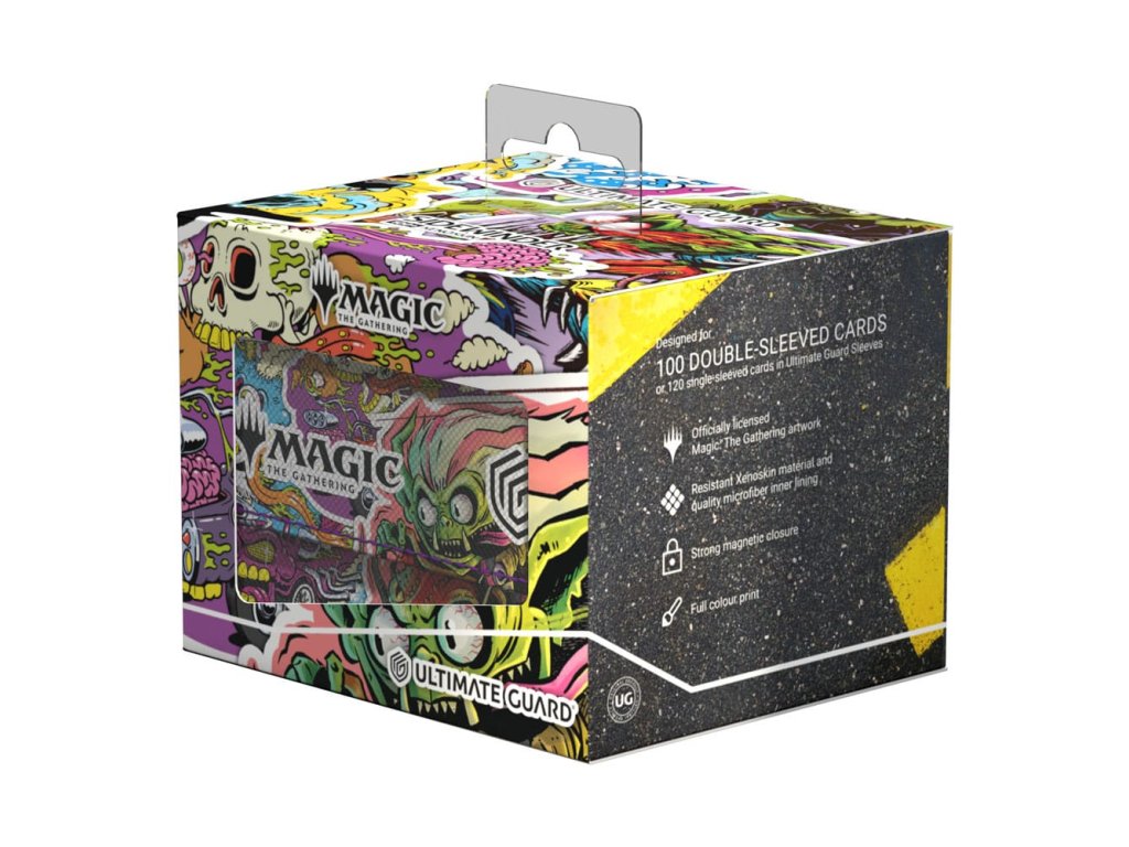 A Sidewinder 100+ Xenoskin egy kiváló minőségű TCG kártyadoboz, amely prémium kártyavédelmet nyújt tartós Xenoskin anyaggal, mikroszálas belső béléssel és erős mágneses záródással, miközben könnyű és kényelmes hozzáférést biztosít a benne lévő paklihoz. A kártyatokok teljes színben vannak nyomtatva, hivatalosan licencelt kreatív elemekkel a hamarosan megjelenő Magic: The Gathering készletből, az "Aetherdrift"-ből. A Sidewinder 100+ Xenoskin optimalizáltan 100 kártya tárolására alkalmas dupla tokkal vagy 120 kártya tárolására szimpla tokkal az Ultimate Guard tokokban.