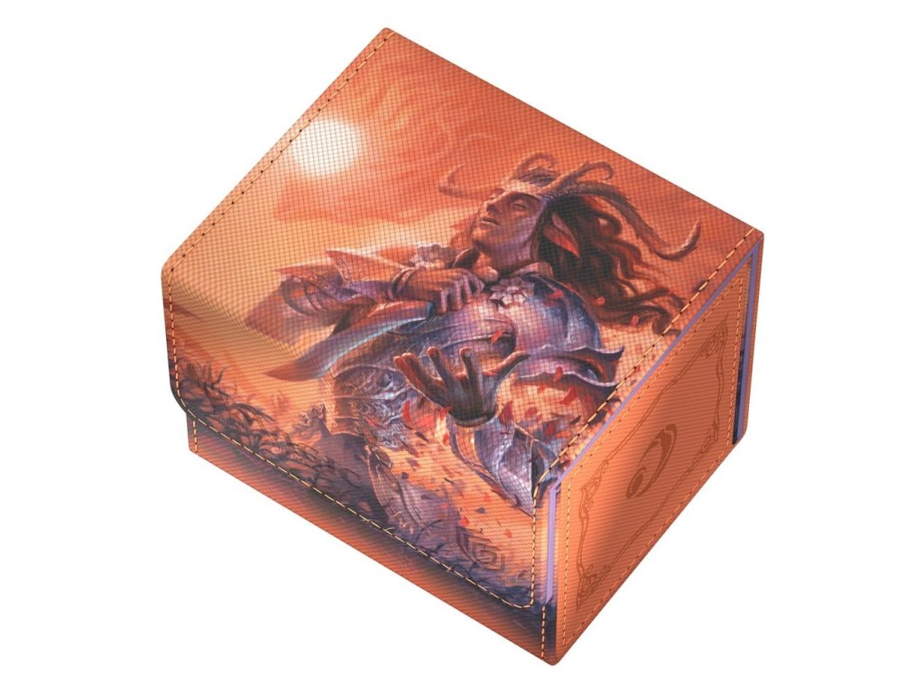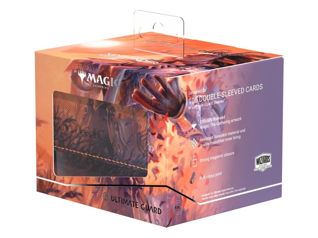 A tartós Xenoskin anyagból készült Sidewinder 100+ akár 100 dupla csomagolású kártyát* is tartalmaz, amelyek az erős mágneses záródásnak és a puha mikroszálas belső bélésnek köszönhetően biztonságosan el vannak zárva a kártyadobozban. A Sidewinder tartós, kiváló minőségű Xenoskin felülete teljes színben, a Magic: The Gathering "Lorwyn Eclipsed" készlet hivatalosan engedélyezett grafikájával van nyomtatva.