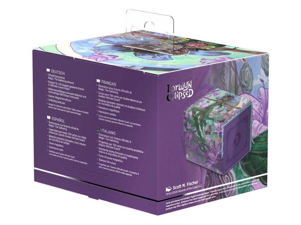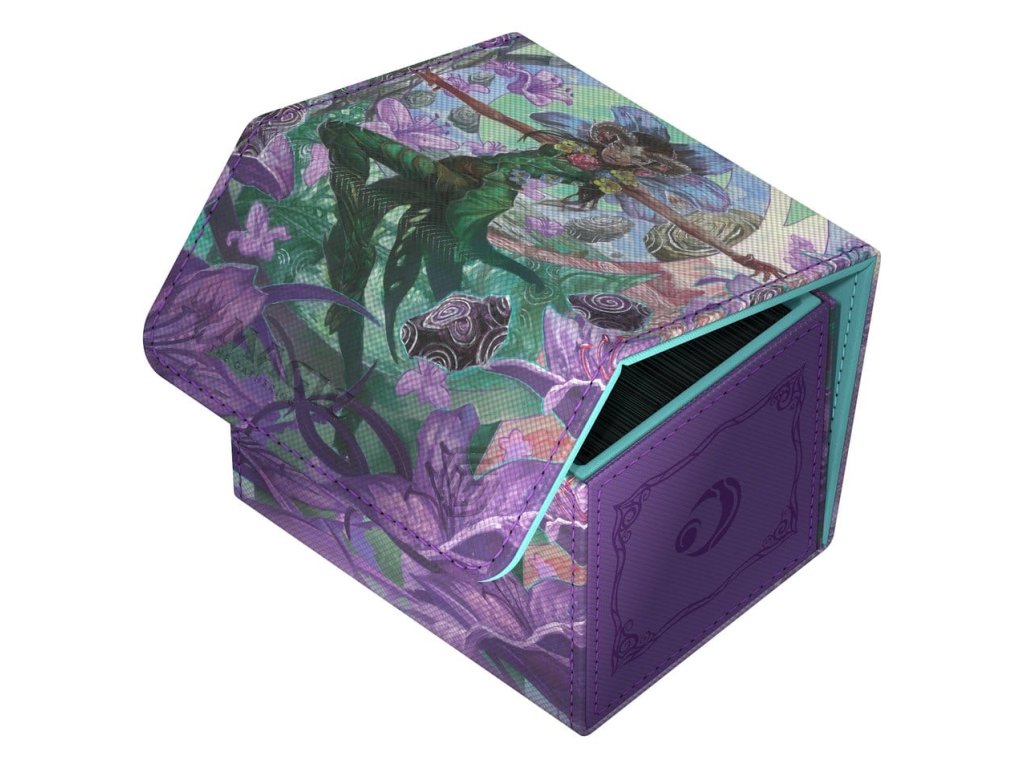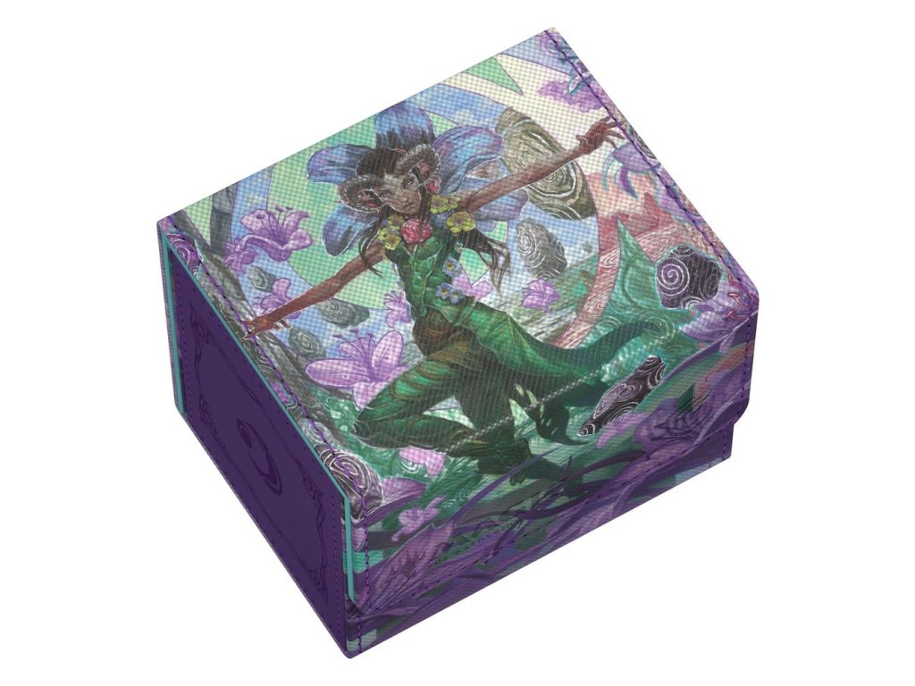 A tartós Xenoskin anyagból készült Sidewinder 100+ akár 100 dupla csomagolású kártyát* is tartalmaz, amelyek az erős mágneses záródásnak és a puha mikroszálas belső bélésnek köszönhetően biztonságosan tárolhatók a kártyadobozban. A Sidewinder tartós, kiváló minőségű Xenoskin felülete teljes színben, a Magic: The Gathering "Lorwyn Eclipsed" készlet hivatalosan engedélyezett grafikájával van nyomtatva.