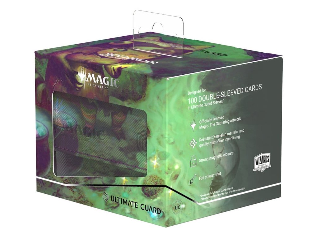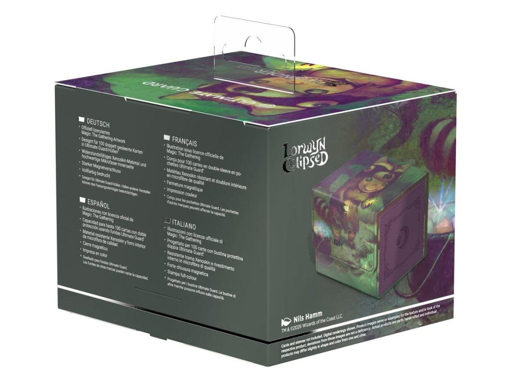 A strapabíró Xenoskin anyagból készült Sidewinder 100+ akár 100 darab, kétszeresen lezárt kártyát* is tartalmaz, amelyeket erős mágneses zár és puha mikroszálas belső bélés biztonságosan véd a kártyadobozban. A Xenoskin Sidewinder tartós, kiváló minőségű felületére teljes színben, a Magic: The Gathering "Lorwyn Eclipsed" készletének hivatalosan engedélyezett grafikája van nyomtatva.