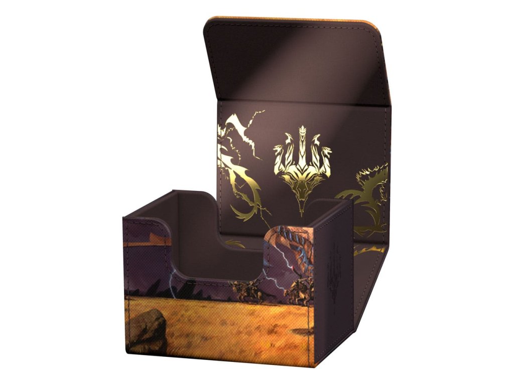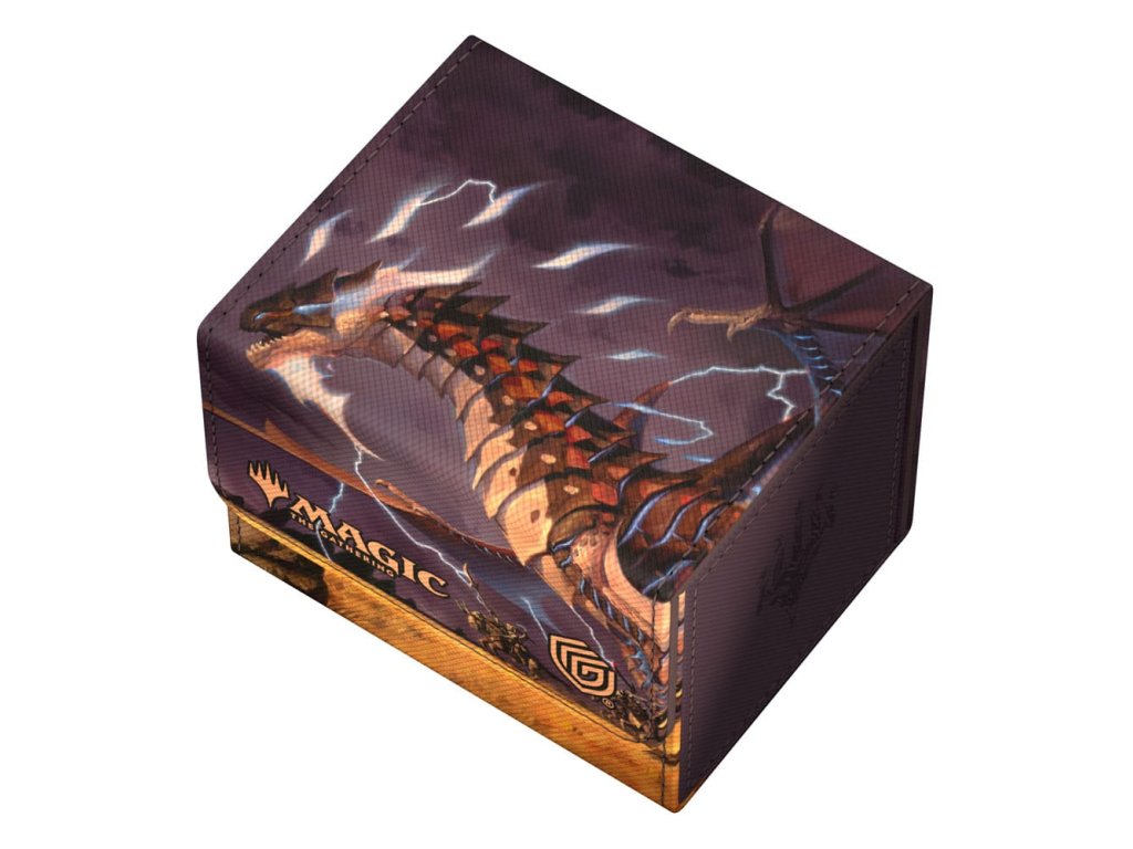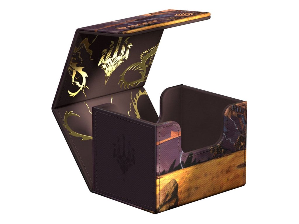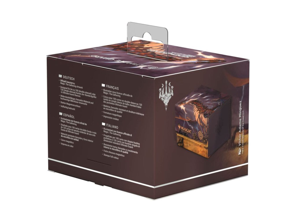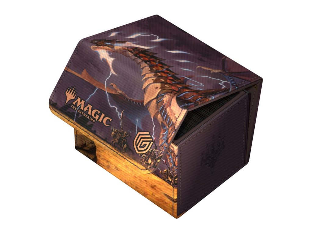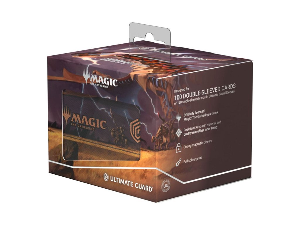 A különleges kiadású Ghostfire Sidewinder 100+ Xenoskin, amelynek mikroszálas belseje gyönyörűen csillog, a Magic: The Gathering hivatalosan licencelt részeivel van nyomtatva a Tarkir: Dragonstorm készlettel. A tartós Xenoskin anyagból készült, biztonságos mágneses záródással ellátott, kiváló minőségű paklis dobozban akár 100 kétszer hajtogatott vagy 120 egyszeresen hajtogatott kártya is elfér.