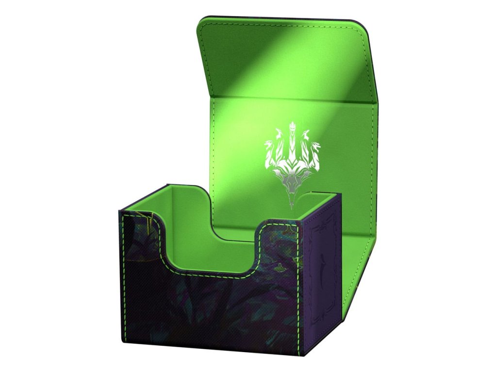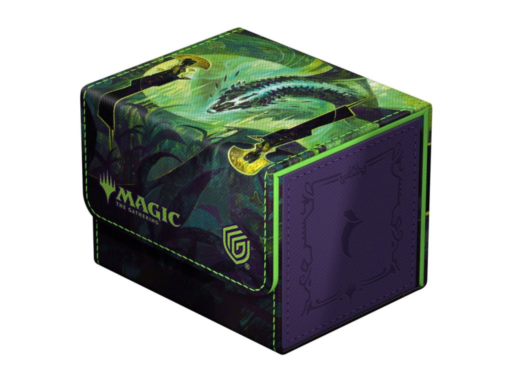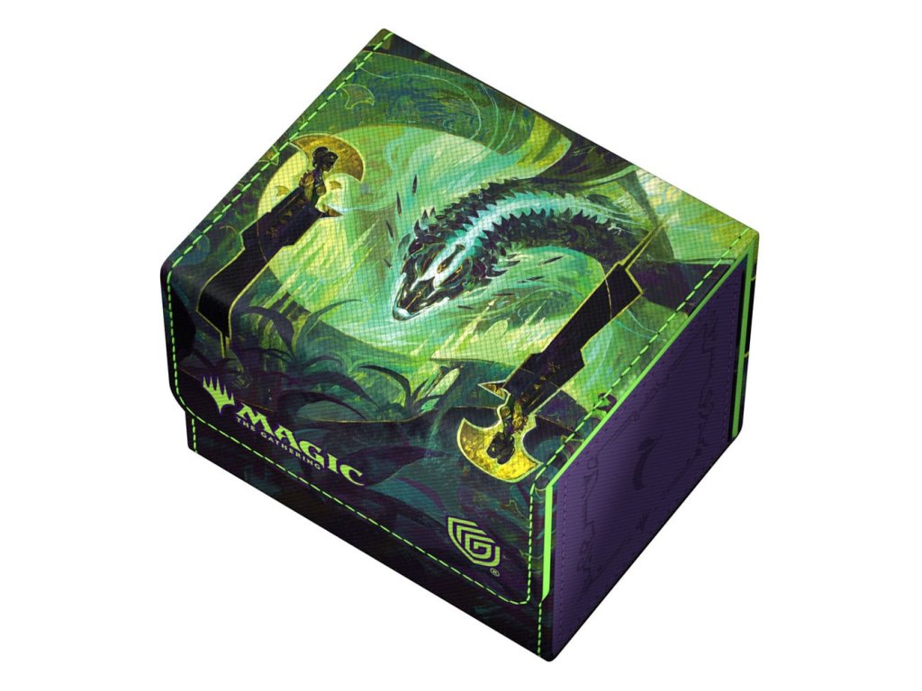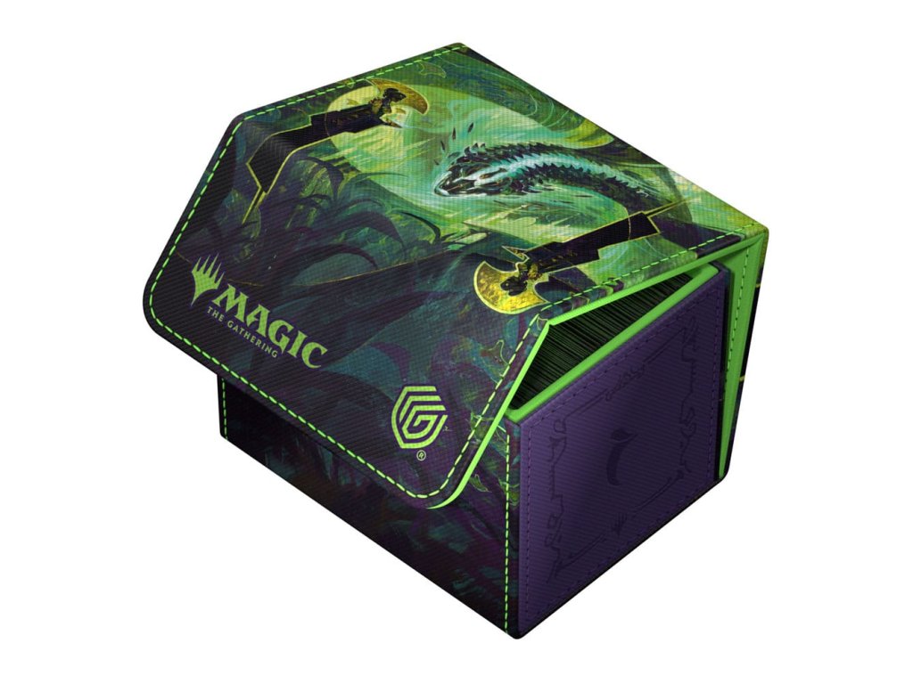 A strapabíró Xenoskin anyagból készült Sidewinder 100+ akár 100 dupla csomagolású vagy 120 egyszemélyes csomagolású kártyát is tartalmaz, amelyek az erős mágneses zárásnak és a puha mikroszálas belső térnek köszönhetően biztonságosan tárolhatók a kártyadobozban. A Sidewinder strapabíró, kiváló minőségű Xenoskin felülete teljes színben, a Magic: The Gathering Tarkir: Dragonstorm készletének hivatalosan engedélyezett grafikájával van nyomtatva.