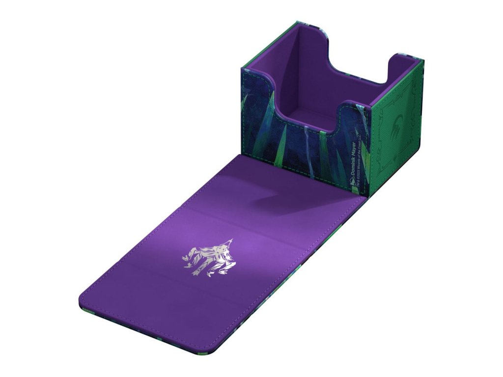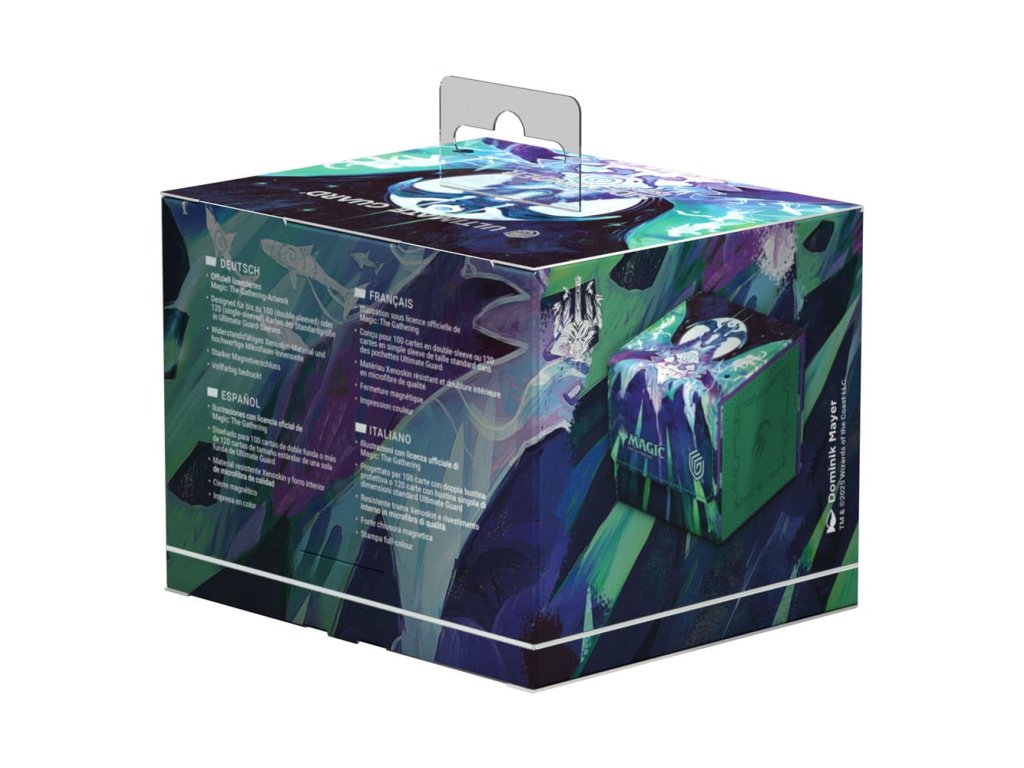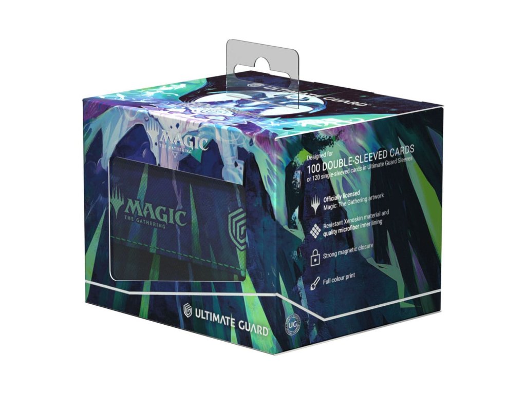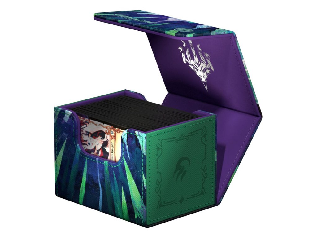 A tartós Xenoskin anyagból készült Sidewinder 100+ akár 100 kártyát is tárolhat egy dupla tokban vagy 120 kártyát egy tokban, amelyeket az erős mágneses záródásnak és a puha mikroszálas belső bélésnek köszönhetően biztonságosan tárol a kártyadobozban. A Sidewinder szilárd, kiváló minőségű Xenoskin felületére teljes színben nyomtatva, a Magic: The Gathering Tarkir: Dragonstorm szettjének hivatalosan engedélyezett grafikájával.