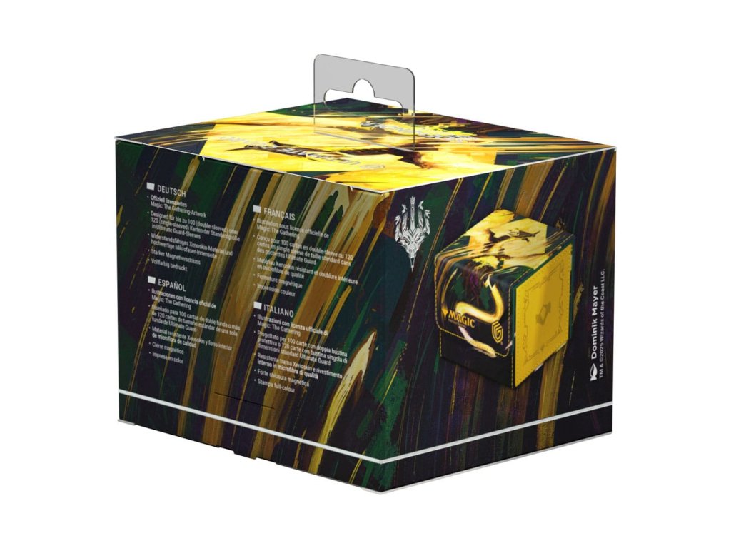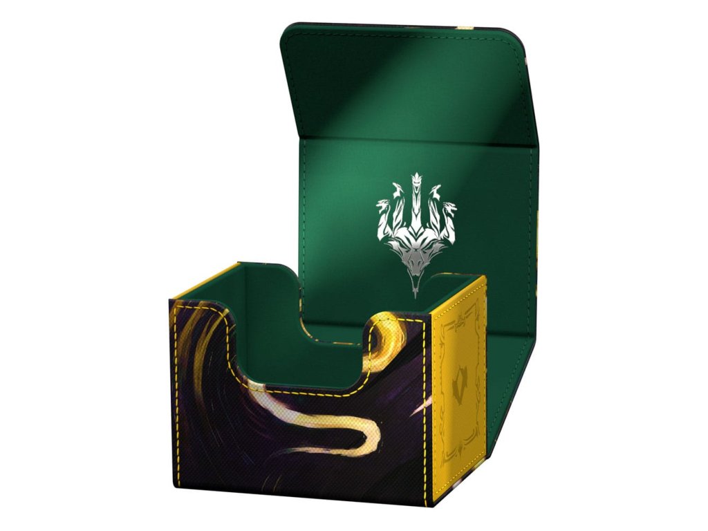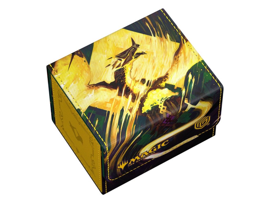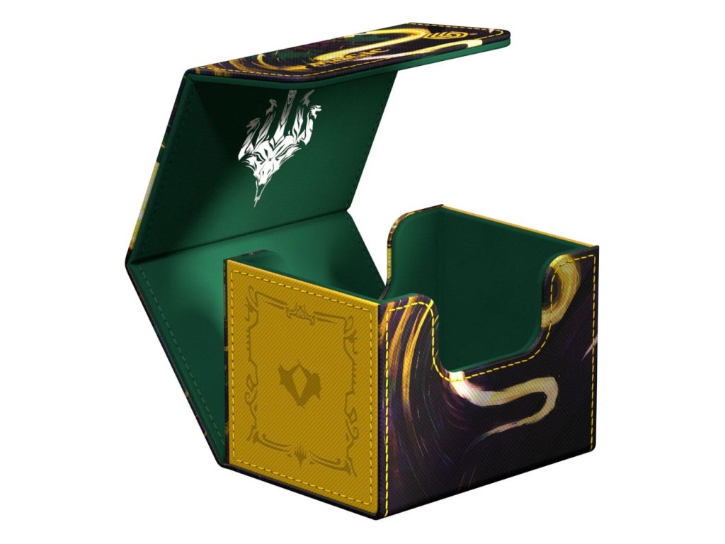A tartós Xenoskin anyagból készült Sidewinder 100+ akár 100 dupla vagy 120 egyszemélyes csomagolású kártyát is tartalmaz, amelyek az erős mágneses zárásnak és a puha mikroszálas belső térnek köszönhetően biztonságosan tárolhatók a kártyapakli dobozban. A Sidewinder strapabíró, kiváló minőségű Xenoskin felülete teljes színben, a Magic: The Gathering Tarkir: Dragonstorm szettjének hivatalosan licencelt grafikájával van nyomtatva.