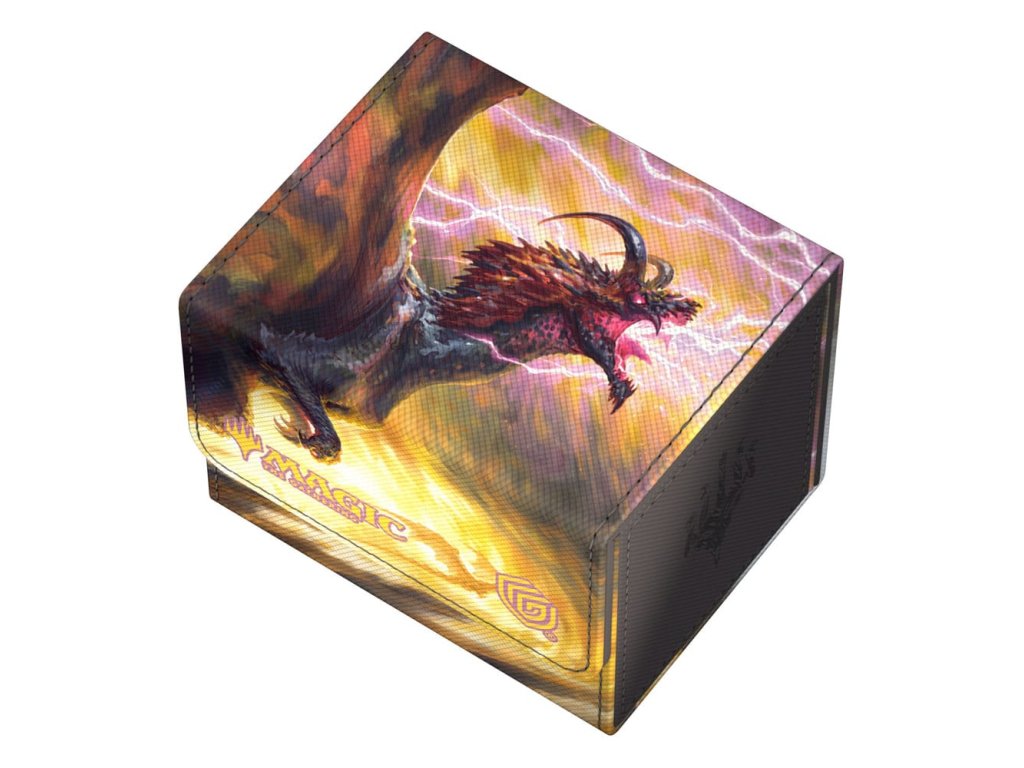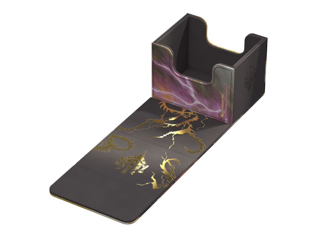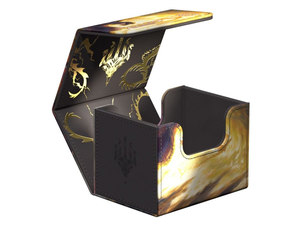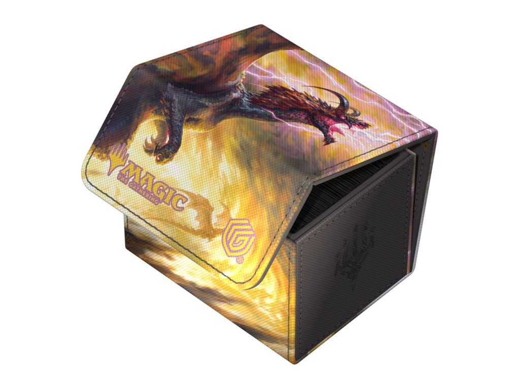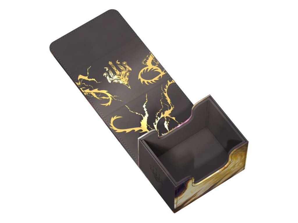 A különleges kiadású Ghostfire Sidewinder 100+ Xenoskin látványos fényes dombornyomással a mikroszálas belső részen, a Magic: The Gathering - Tarkir: Dragonstorm készlet hivatalosan licencelt grafikájával. Ez a minőségi kártyadoboz tartós Xenoskin anyagból készült, megbízható mágneses záródással, és akár 100 kétfejű vagy 120 egyfejű kártya befogadására alkalmas.