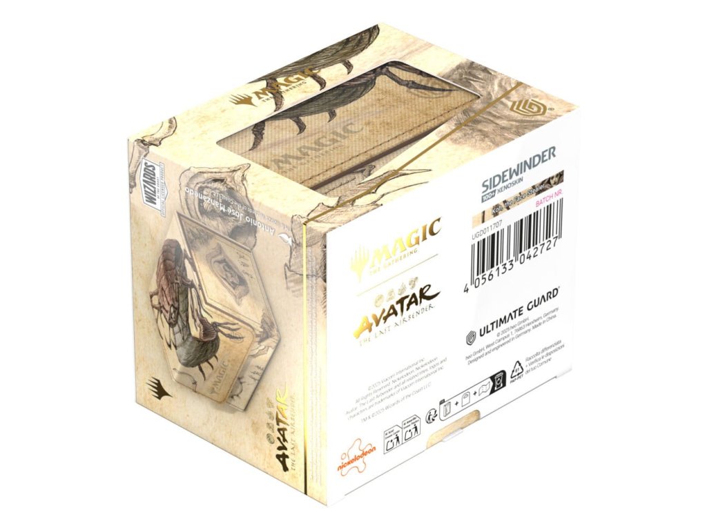 A tartós Xenoskin anyagból készültSidewinder 100+ akár 100 dupla csomagolású kártyát is tartalmaz, amelyek az erős mágneses záródásnak és a puha mikroszálas belső bélésnek köszönhetően biztonságosan el vannak rejtve a kártyadobozban. A Sidewinder kiváló minőségű Xenoskin anyagból készült tartós felületére a Magic: The Gathering | Avatar: Az utolsó léghajlítóból származó, hivatalosan licencelt művészeti alkotások teljes színben vannak nyomtatva.