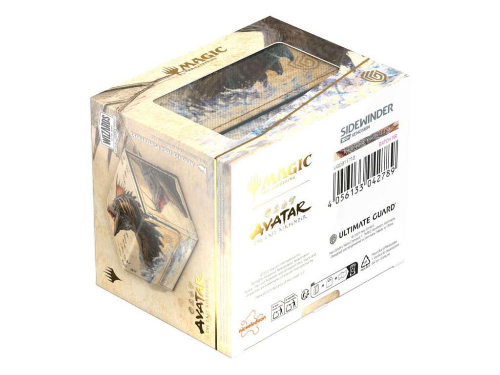 A tartós Xenoskin anyagból készültSidewinder 100+ akár 100 dupla csomagolású kártyát is tartalmaz, amelyek az erős mágneses záródásnak és a puha mikroszálas belső bélésnek köszönhetően biztonságosan tárolhatók a kártyadobozban. A Sidewinder tartós, kiváló minőségű Xenoskin felülete teljes színben, a Magic: The Gathering | Avatar: The Last Airbender készlet hivatalosan engedélyezett grafikájával van nyomtatva.