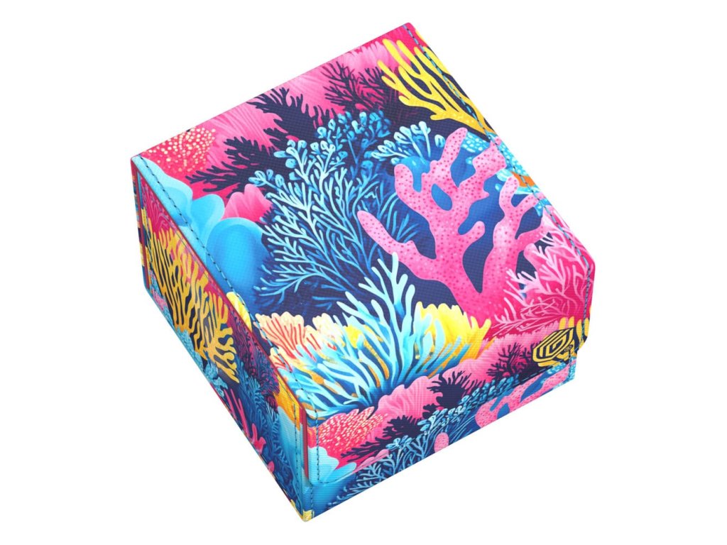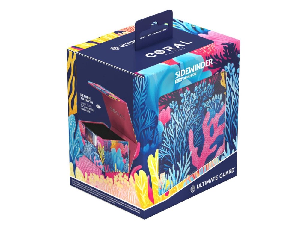 Merülj el a virágzó víz alatti világokban az Ultimate Guard's Coral Places Sidewinders játékkal! Ez a fenntartható kártyadoboz 52%-ban újrahasznosított anyagokból készült, és a tartós Xenoskin felület mellett erős mágneses záródással és kiváló minőségű mikroszálas belső béléssel rendelkezik. A dupla hüvelyben* 133 kártya befogadóképességével ez a tökéletes MTG kártyadoboz a Commander csomagjaidhoz, extra hely a tokeneknek! A műanyagmentes csomagolás ráadásul teljes egészében újrahasznosított papírból és cellulózfóliából készült.