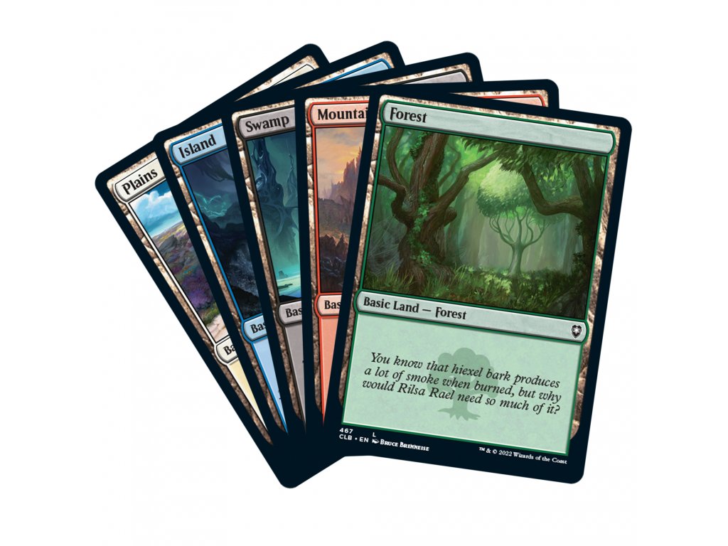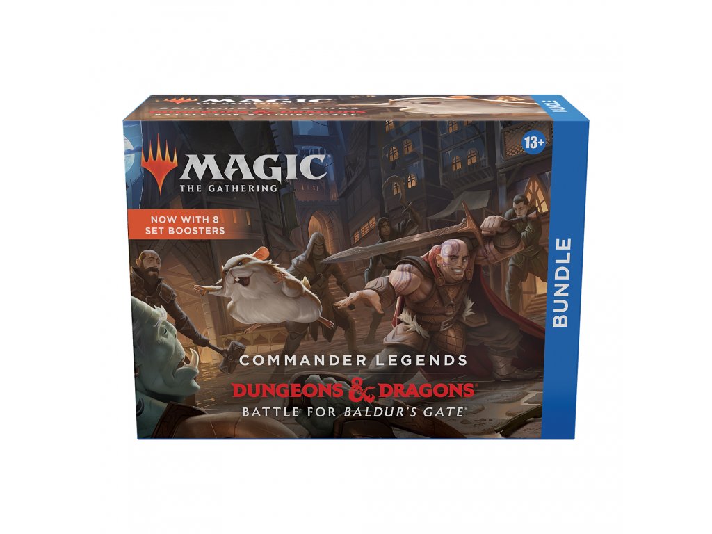 A Commander Legends és a D&D találkozik ebben az izgalmas crossover készletben! A Commander Legends: Baldur's Gate csomag 8 készletbővítőt tartalmaz. Ezen kívül tartalmaz 40 alapföldet (20 hagyományos fóliás és 20 nem fóliás), 1 hagyományos fóliás promóciós kártyát exkluzív alternatív grafikával, 1 túlméretezett Spindown életszámlálót, 1 kártyadobozt és 2 referenciakártyát.