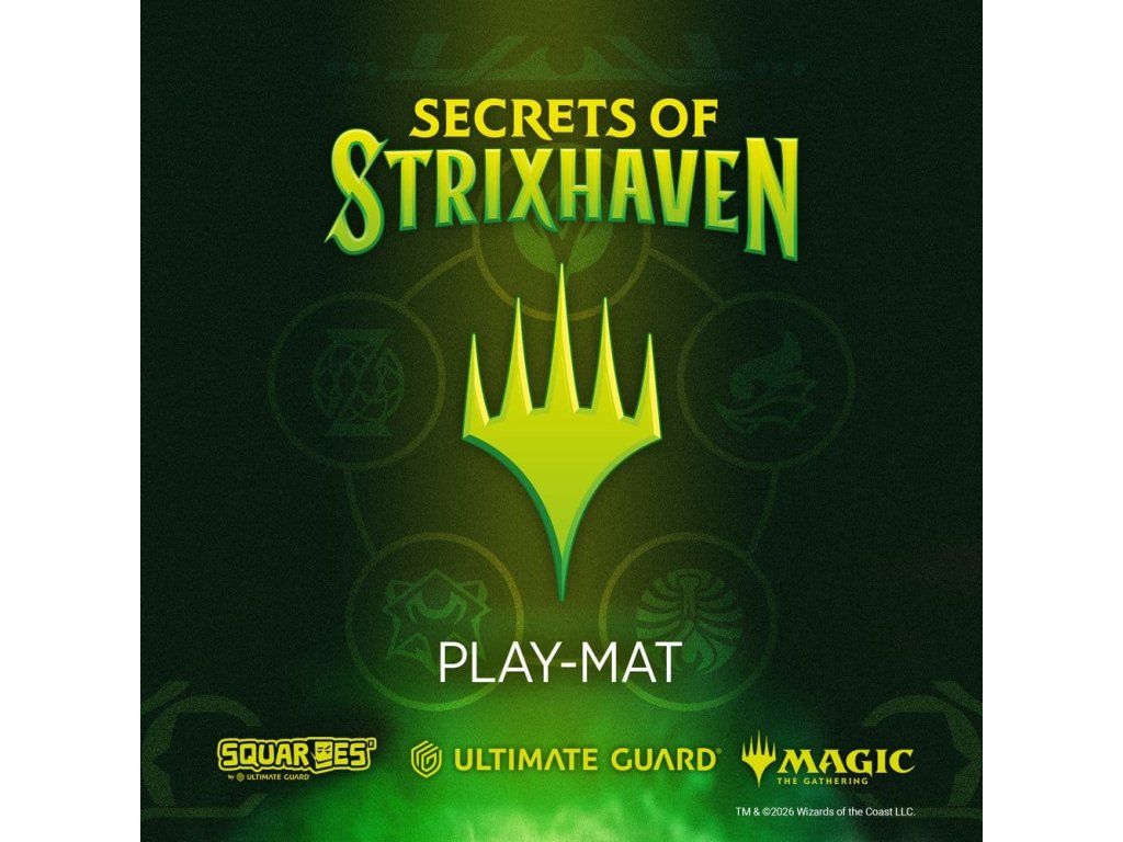 A Magic: The Gathering "Secret of Strixhaven" készlet hivatalosan licencelt grafikájával ellátott Play-Mat Standard az Ultimate Guard-tól egy kiváló minőségű 61 x 35 cm-es MTG játszószőnyeg, amely fokozza a játékélményt, és megvédi az MTG kártyákat, tokokat és kiegészítőket a karcolásoktól, kopástól és szennyeződésektől. Ez a 2 mm vastag, puhán párnázott szőnyeg természetes gumiból készült, és az Ultimate Guard megbízható csúszásgátló aljával és minőségi, puha szövetfelülettel rendelkezik. A játszószőnyeg szélei varrottak, hogy megakadályozzák a foszlást és biztosítsák a hosszú élettartamot.