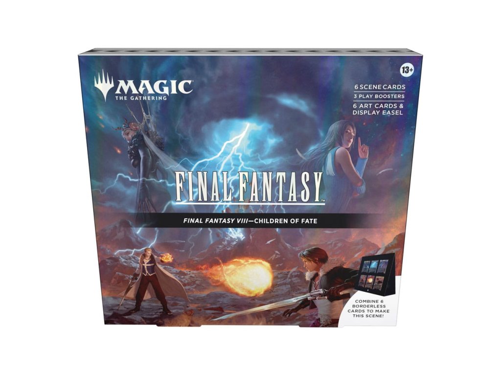 A Scene Box Magic: The Gathering - Final Fantasy (angol) egy tematikus gyűjtői csomag a Magic: The Gathering világát a legendás Final Fantasy-sorozattal összekötő crossover kiadásból. Ez a doboz a Final Fantasy-univerzum ikonikus jeleneteire és pillanataira összpontosít, amelyeket exkluzív kártyák és a sorozatra jellemző látványvilág ábrázol. A Scene Box elsősorban a gyűjtőknek és a Final Fantasy rajongóknak szól, de az MTG játékosoknak is örömet okoz majd, akik tematikusan jellegzetes és egyedi kártyákkal szeretnék bővíteni angol nyelvű gyűjteményüket.