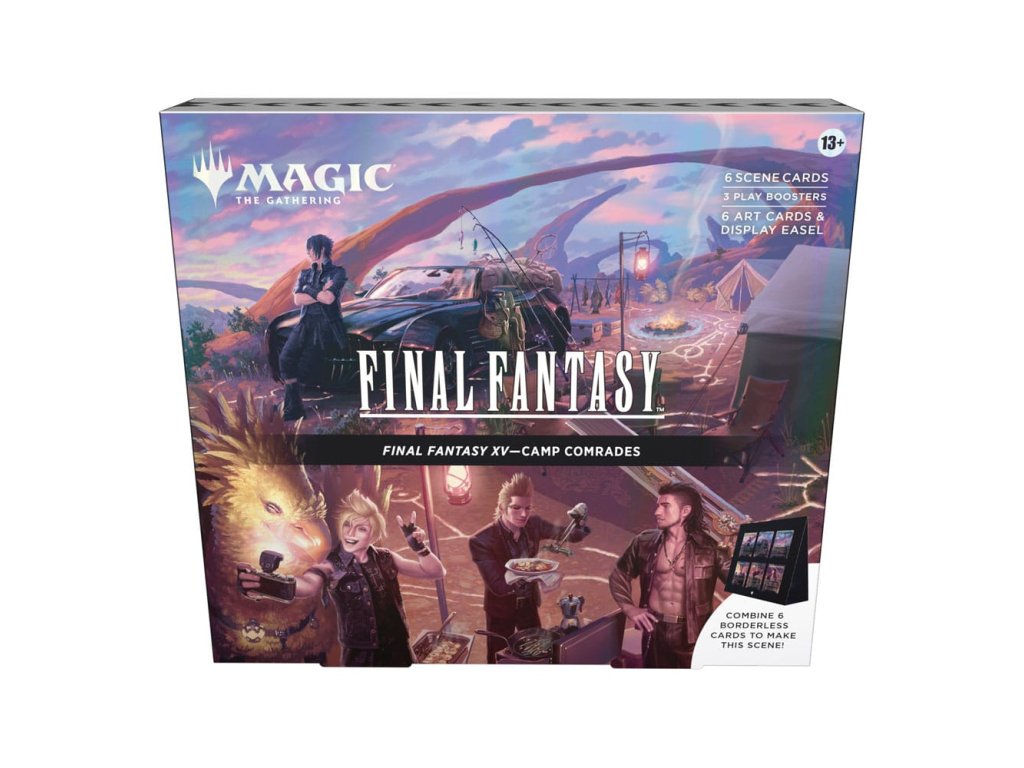 A Scene Box Magic: The Gathering - Final Fantasy (angol) egy tematikus gyűjtői csomag a Magic: The Gathering világát a legendás Final Fantasy-sorozattal összekötő crossover kiadásból. Ez a doboz a Final Fantasy-univerzum ikonikus jeleneteire és pillanataira összpontosít, amelyeket exkluzív kártyák és a sorozatra jellemző látványvilág ábrázol. A Scene Box elsősorban a gyűjtőknek és a Final Fantasy rajongóknak szól, de az MTG játékosoknak is örömet okoz majd, akik tematikusan jellegzetes és egyedi kártyákkal szeretnék bővíteni angol nyelvű gyűjteményüket.