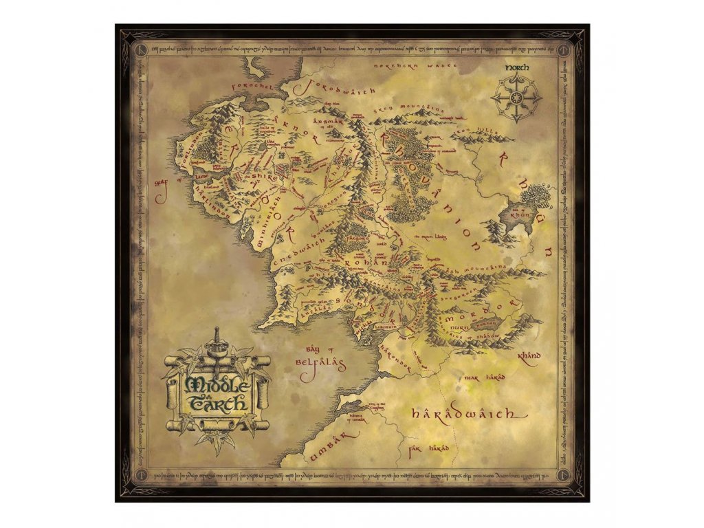 Egy nagyon részletes, gyönyörűen ábrázolt térkép Középföldéről a 3. korszakban.