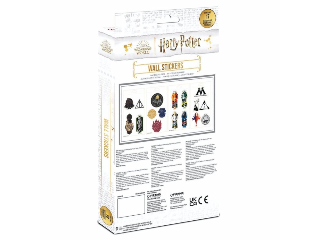 A készlet 20 matricát tartalmaz a Harry Potter-rajongók számára a Roxfort Boszorkány- és Varázslóképző Iskola témakörében. A matricák falra alkalmasak, és megszépítik otthonodat, dolgozószobádat. A képek között szerepel Hedvig, a bagoly, a Halál ereklyéinek szimbóluma és a Roxfort kollégiumok: Griffendél, Szilaj, Mrzimor és Hollóhát.