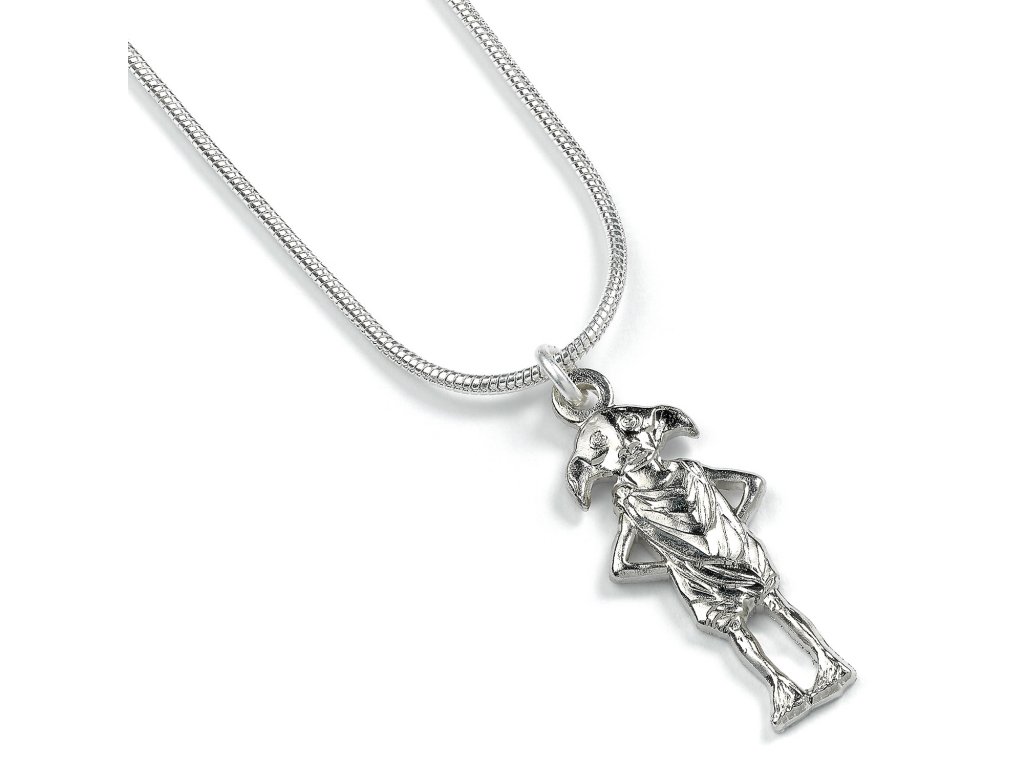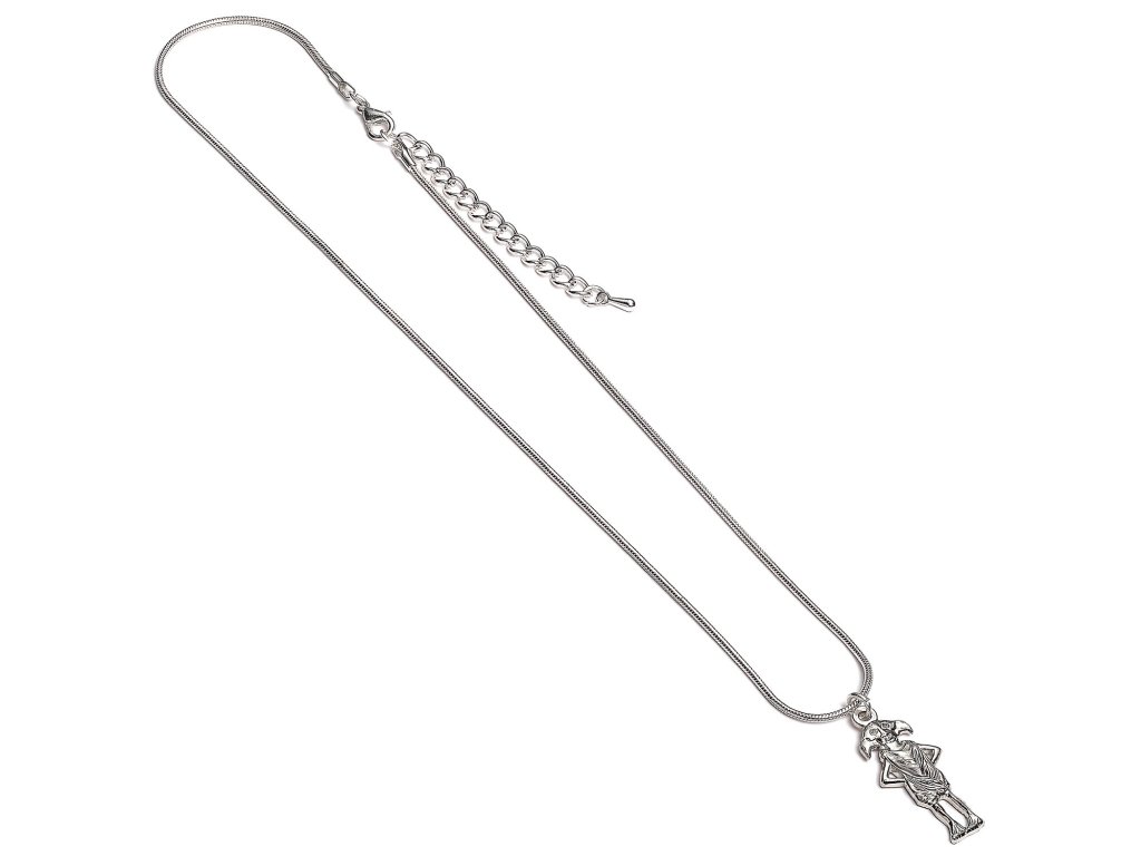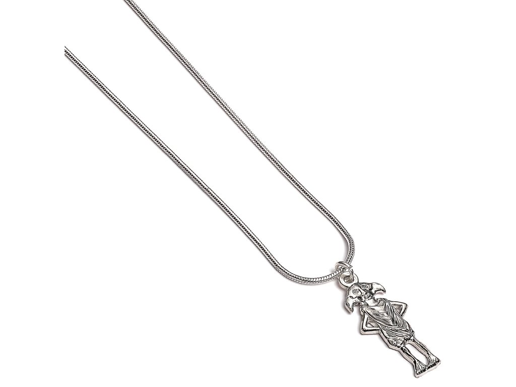 Egy csinos nyaklánc Dobby, a házimanó, Harry Potter hűséges barátjának medáljával, amely boldoggá teszi a fiatal és idős rogwarti varázslókat egyaránt! A nyaklánc egy 45 cm hosszú, ezüstözött kígyóláncból áll.