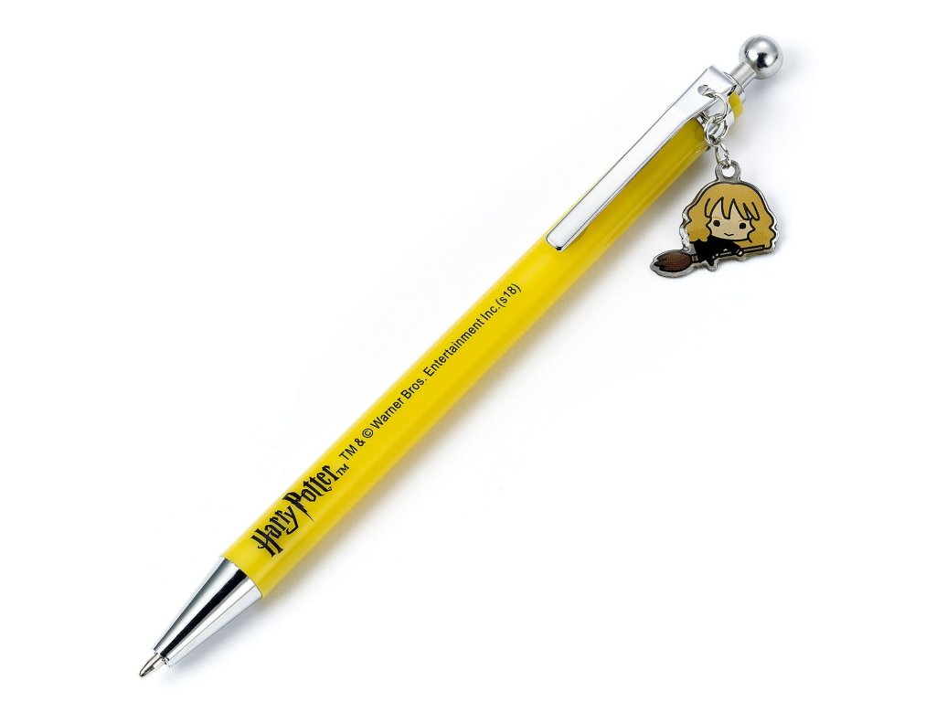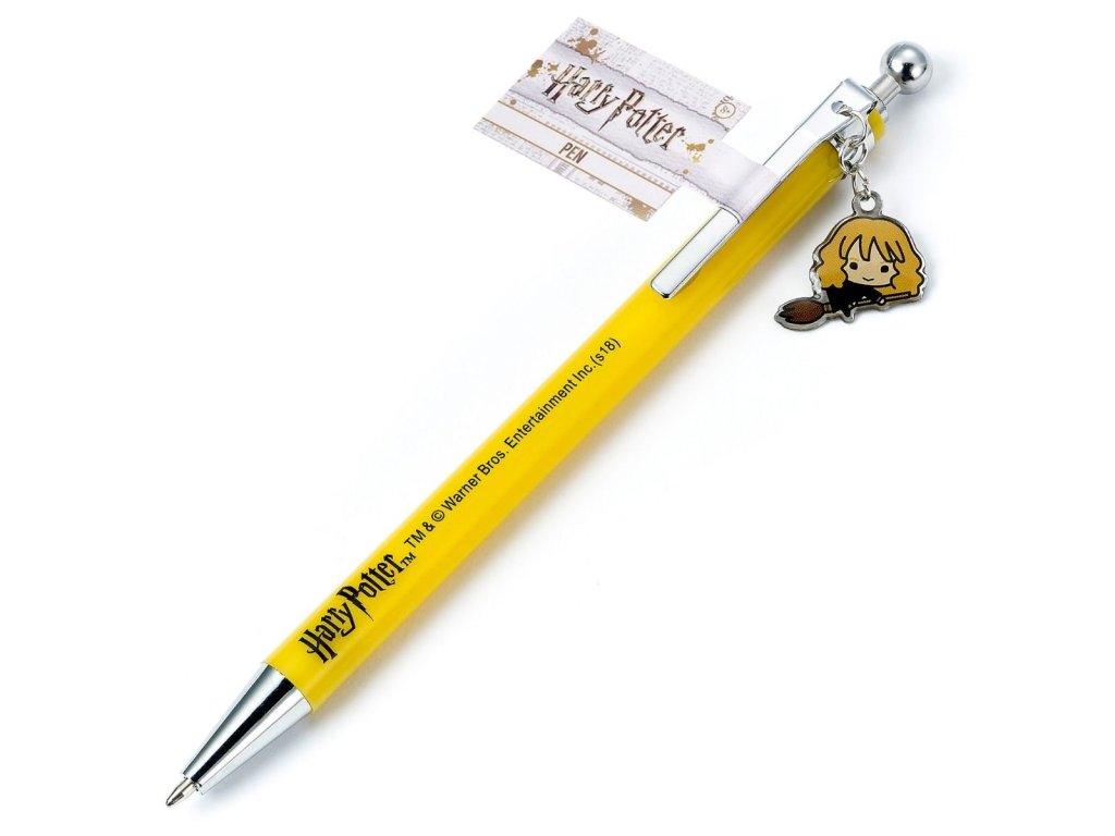 A rogwarti varázslatos történetek minden rajongója értékelni fogja a sárga tollat, amelyen Hermione Granger látható egy repülő seprűn, Harry Potter hűséges barátja az azonos című könyvekből és filmekből! Hermione medálja a Chibi japán animációs stílusban készült.