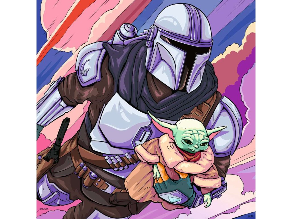 Grogu (Baby) és Mando a sztárjai ennek a csodálatos kirakósnak. A szupermenő stilizált minták a drámai történet kulcsfontosságú pillanatait örökítik meg. Nagyszerű ajándék minden Mandalorian-rajongónak, és jó szórakozás egyedül vagy a családdal és a barátokkal. Minden egyes puzzle hátoldalára más-más minta van nyomtatva, így a kirakós összeszerelés előtt szétválogatható.