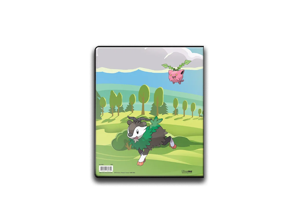 A 9 kapszulából álló Pokémon-album élénk, színes borítóképeken négy ikonikus Pokémon-típus - Skiddo, Hoppip, Deerling (tavaszi forma) és Meowscarada - látható. Az album akár 90 szabványméretű kártyát egyoldalasan és 180 kártyát kétoldalasan tárol és véd az archiválásra alkalmas polipropilén oldalakon. Kaliforniában, az USA-ban készült.