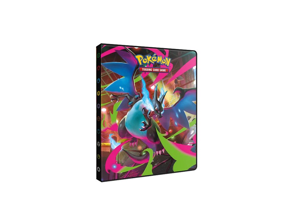 A 9 zsebes Pokémon-album élénk, teljes borítóján a Mega Evolution Pokémonjai láthatók. Az album akár 126 szabványméretű kártyát egyoldalasan behelyezve és 252 kártyát kétoldalasan behelyezve tárol és véd az archiválásra alkalmas polipropilén oldalakon. Kaliforniában, az USA-ban készült.