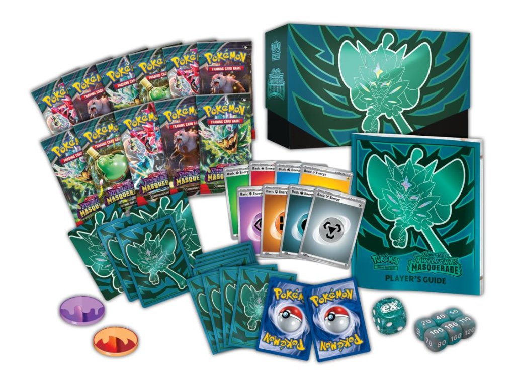 A Pokémon TCG: Scarlet & Violet Twilight Masquerade - Elite Trainer Box tartalmazza: Pokémon TCG: Scarlet & Violet Twilight Masquerade - Elit edző doboz: Scarlet & Violet Twilight Masquerade