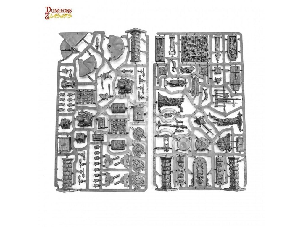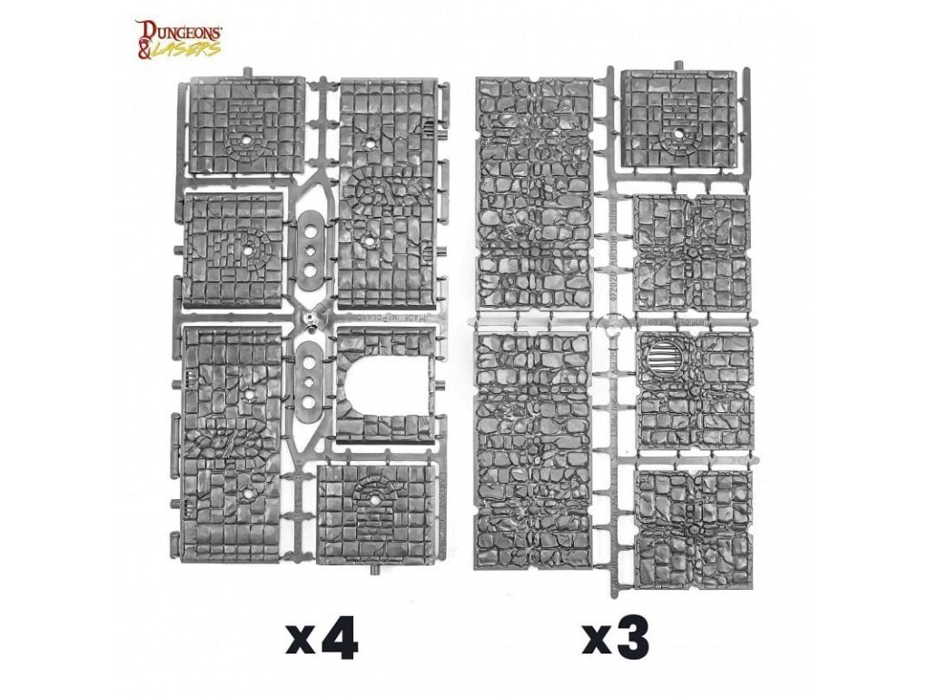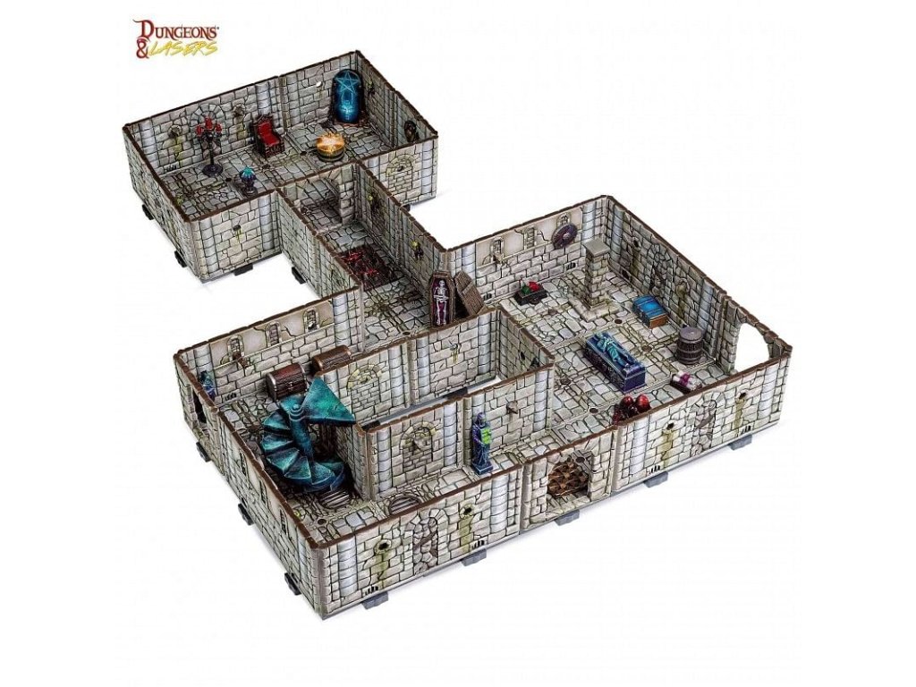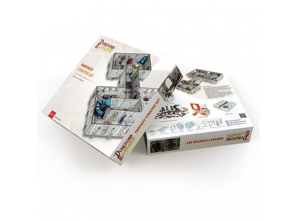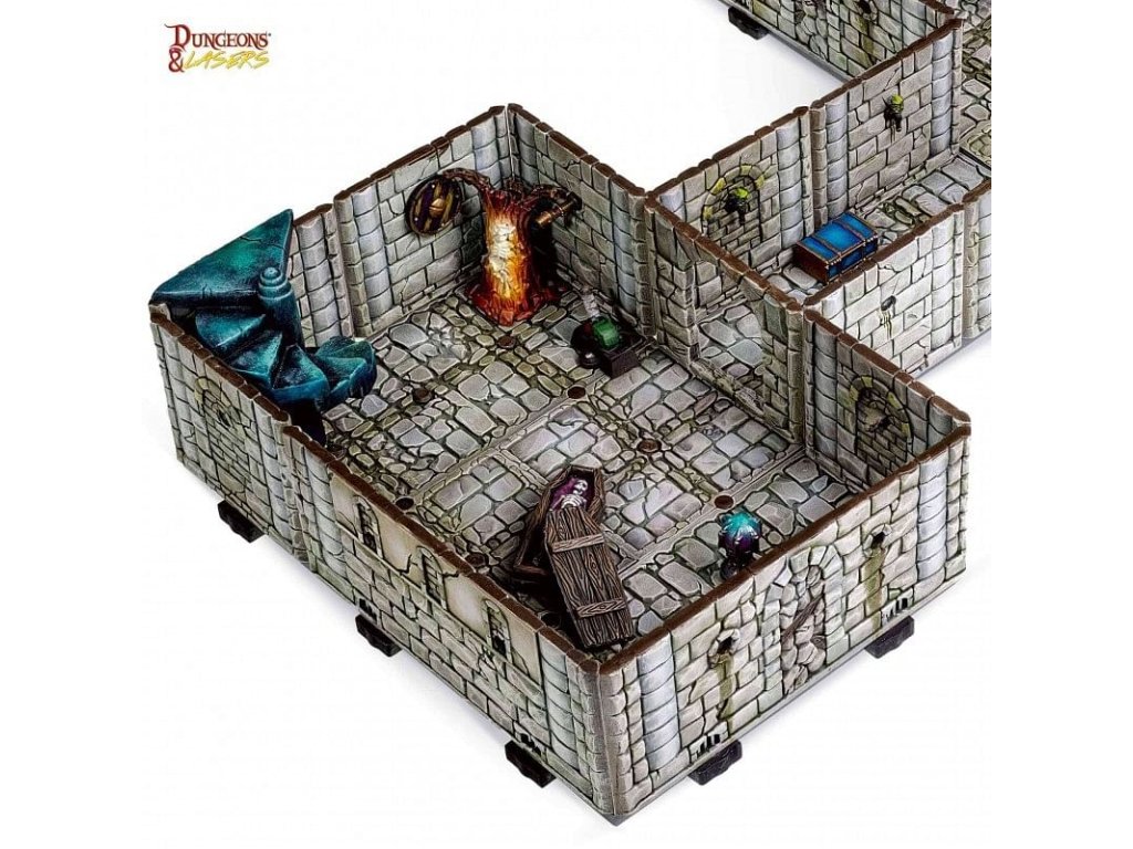 A Dungeons & Lasers: Fantasy Starter Set gyönyörűen kidolgozott szobákat és börtöndarabokat biztosít, hogy könnyedén megteremtsd a játékosok számára a csodálatos hangulatot! A Dungeons & Lasers: Fantasy Starter Set kompatibilis a Dungeons & Dragons 5E vagy bármely más szerepjátékkal. A csomag tartalmaz egy angol nyelvű kézikönyvet az összeszerelési és festési útmutatóval. 6x hosszú padló 9x padló 8x hosszú fal 15x fal 4x ajtó 40x padlócsipesz 44x falcsipesz 64x csapok 26x függőleges klipszek 70x testreszabási bitekKiegészítő paraméterek