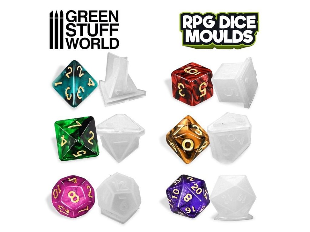 A készlet szilikonformákat tartalmaz poliéderes RPG kockák készítéséhez: négyfalú, hatfalú, nyolcfalú, tízfalú, tizenkétfalú és húszfalú. Alkalmas különböző típusú gyantákhoz (UV, epoxi, poliészter, poliuretán), viaszhoz, szappanhoz, polimer agyaghoz és még sok máshoz. Ellenálló 200ºC-ig.