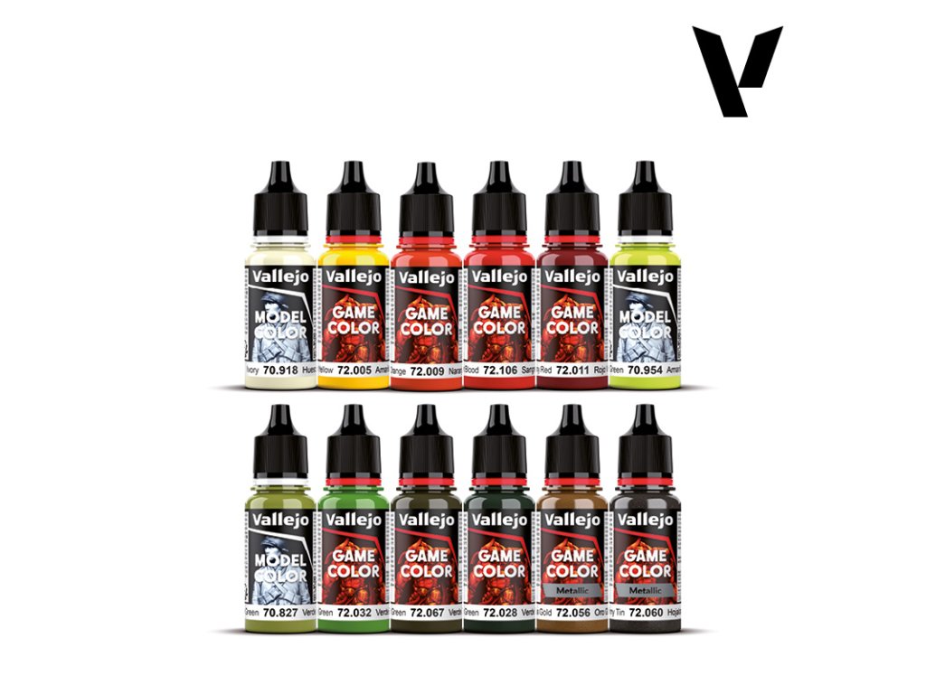 Ez a készlet zöld, narancssárga és mélyvörös árnyalatokat kombinál, amelyeket együtt használva a miniatúráidat egy zöldellő erdőbe helyezheted, extra színt adhatsz egy második reggeli tábortűznek, vagy igazán megmutathatod a bőröd a nem messze leselkedő ork hordának.