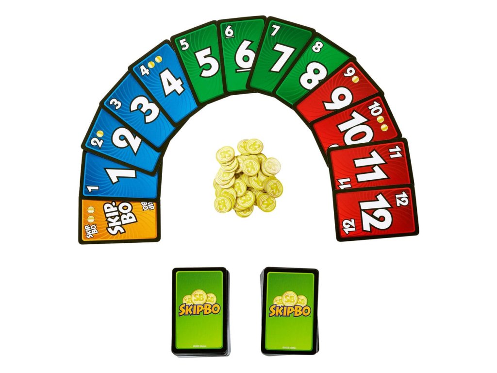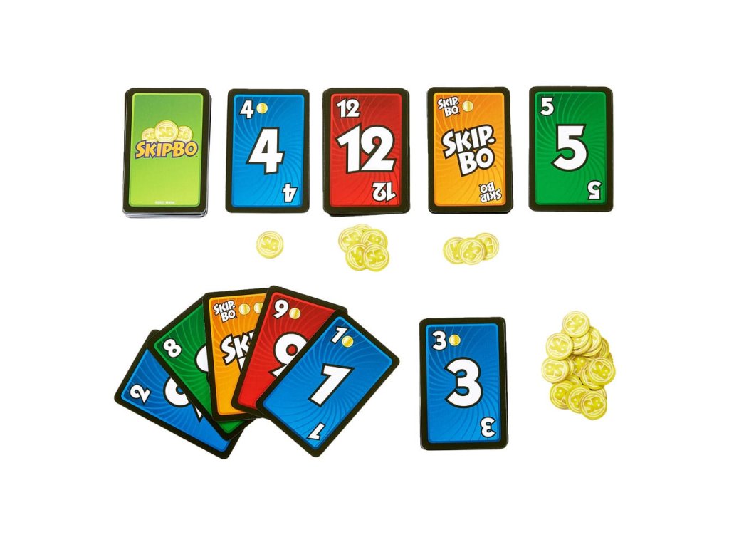 Ez a népszerű Skip-Bo™ kártyajáték, de a kiválasztott érmék stratégiai csavart adnak a játéknak! A játékosok továbbra is megpróbálnak megszabadulni a készletpaklijukban lévő összes kártyától, de az érmékkel kiegészíthetnek egy kártyasorozatot, vagy akár egy másik játékos dobott vagy készletpaklijából is vásárolhatnak kártyát! Ezt a családi kártyajátékot a gyerekek és a felnőttek egyaránt szeretni fogják, akár játékestre, akár útközben. Nagyszerű ajándék a kártyajátékok szerelmeseinek 7 éves kortól - Játékosok: 2-6 fő - Korhatár: 7+ - Többnyelvű használati útmutatóKiegészítő paraméterek