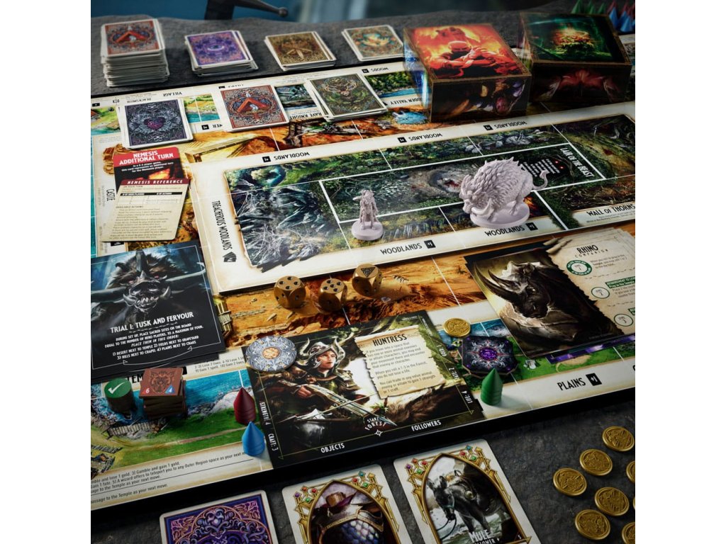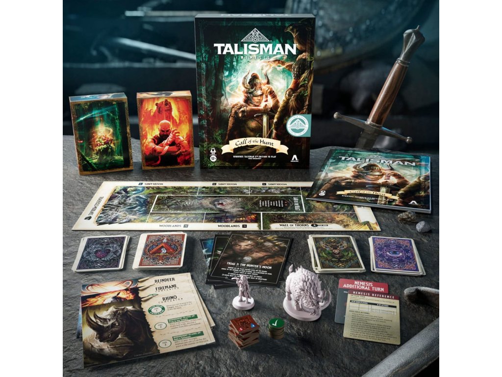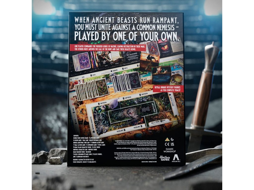 A Nemesis dicsőíti a tomboló vadállatokat, amelyek pusztítást hagynak maguk után. A hősöknek meg kell felelniük a vadászat hívásának, és le kell győzniük a fenevadakat! Készülj fel az 1 vs. sok elleni játékra az Avalon Hill Talisman Nemesis: Call of the Wild bővítményében! A hősöknek össze kell fogniuk, hogy legyőzzék a 3 veszélyes próbatételt, amelyek mindegyike egyedi ellenféllel és gonosztevő karakterekkel rendelkezik. A győzelemhez minden ellenfelet le kell győzniük, mielőtt a Nemesis játékos kiirtja őket. Mi a Nemesis célja? Minden próbatétel egy újat hoz. Ahogy a játékosok teljesítik a próbákat, dobozokat nyitnak ki, és titokzatos kártyákat és darabokat fedeznek fel, amelyekkel kiegészíthetik játékukat. Hozzatok létre egy magával ragadó estét ezzel a kalandjátékkal 3-6 játékosnak, 12 éves kor felett. (A játékhoz Talisman 5th Edition szükséges. (Külön megvásárolható. A elérhetőség változhat.) További kalandokért keressétek a Talisman Alliances bővítményt és a Talisman 5th Edition alapjátékot! (Mindegyik külön-külön kapható.) Tartalmaz kétoldalas középső játékmezőt, 11 kalandkártyát, 14 előnykártyát, próbakártyát, Nemezis referenciakártyát, Nemezis kiegészítő kártyát, 7 normál akciókártyát, 7 próba 1 akciókártyát, 6 társas kártyát, 9 varázslatkártya, 9 Vadkan karakterjegy, 6 szintjegy, Vadásznő karakterkártya, Vadásznő figura, Vadkan hadúr figura, szabályok, 2 doboz, amely 19 játékkártyát, 3 műanyag figurát és 2 kartonalkatrészt tartalmaz.Kiegészítő paraméterek
