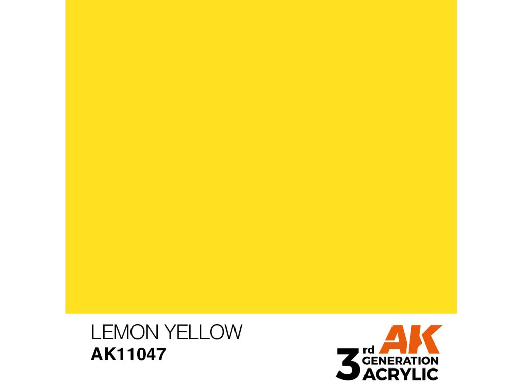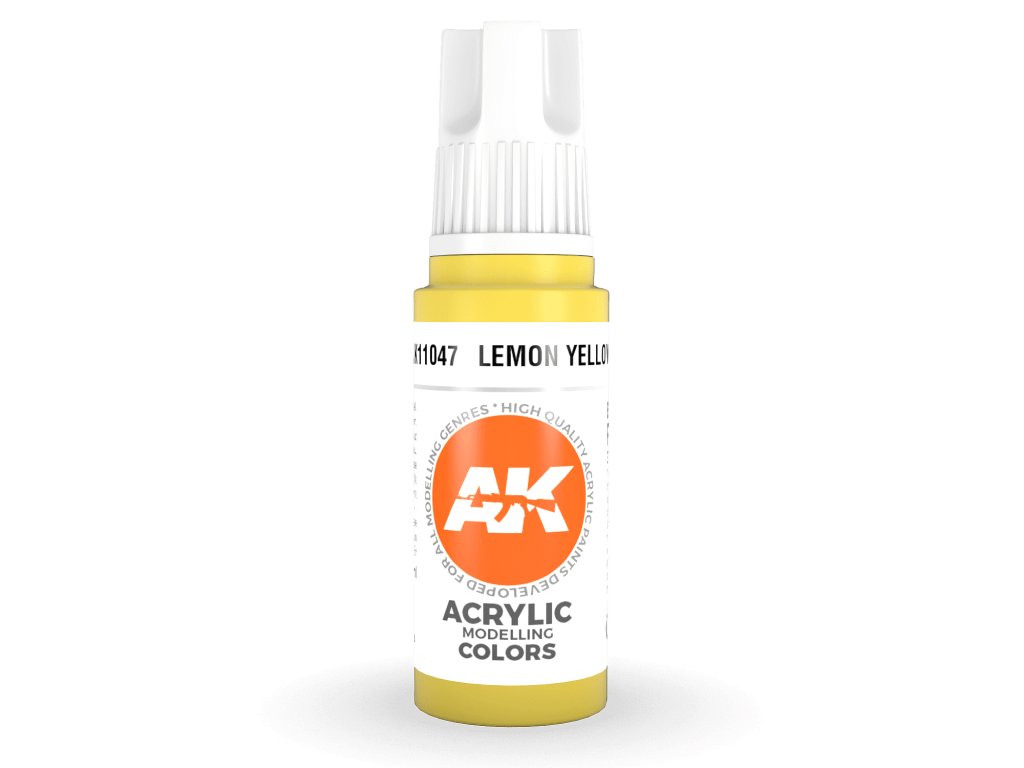 A Lemon Yellow akrilfesték az AK Interactive-tól ecsettel és airbrush-rel történő felvitelre alkalmas. A 3. generációs akril modellfestékek (3Gen) az eddigi legkifinomultabb akrilfesték-formuláció. A General Series festékek kiváló fedőképességgel, elképesztő tapadással rendelkeznek, és az új összetétel megakadályozza a fúvóka eltömődését anélkül, hogy hosszadalmas festékkeverésre lenne szükség.Kiegészítő paraméterek