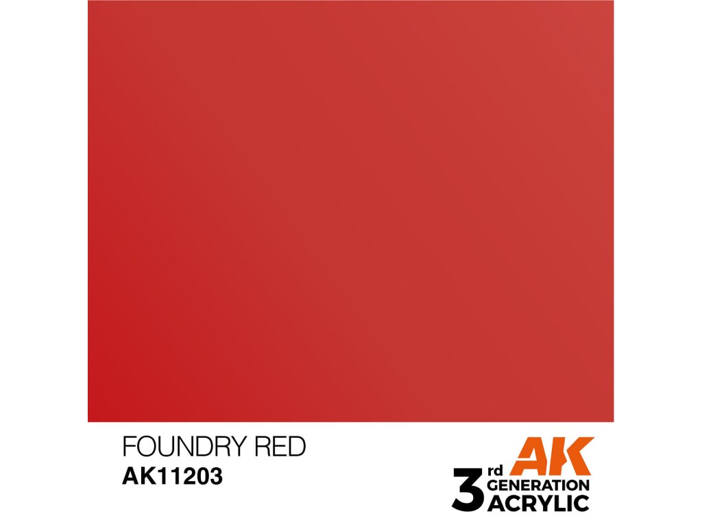 Az AK Interactive Metallic Foundry Red akrilfesték ecsettel és airbrush-rel történő felvitelre alkalmas. A 3. generációs (3Gen) akril modellfestékek az eddigi legkifinomultabb akrilfesték-formuláció. A General Series festékek kiváló fedőképességgel, elképesztő tapadással rendelkeznek, és az új összetétel megakadályozza a fúvóka eltömődését anélkül, hogy hosszadalmas festékkeverésre lenne szükség.Kiegészítő paraméterek