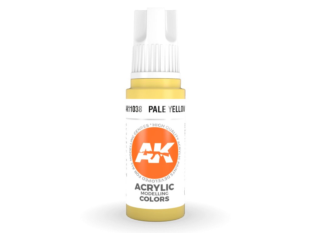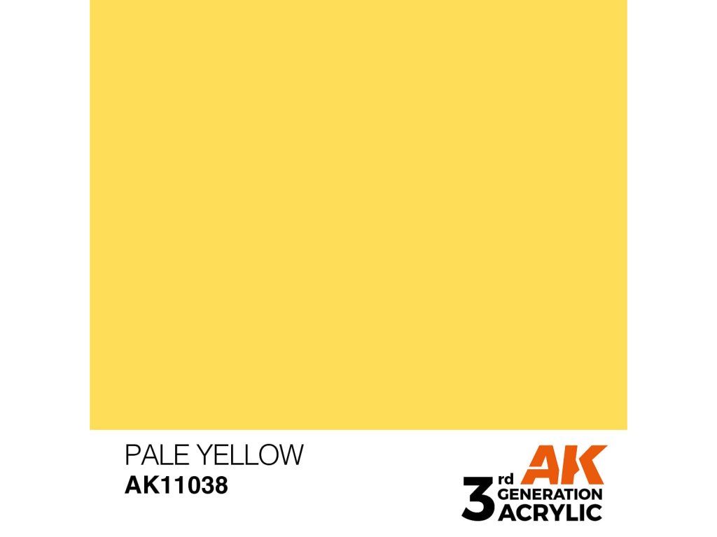 Az AK Interactive halványsárga akrilfestéke alkalmas ecsettel és airbrush-rel történő felvitelre. A 3. generációs akril modellfestékek (3Gen) az eddigi legkifinomultabb akrilfesték-formuláció. A General Series festékek kiváló fedőképességgel, elképesztő tapadással rendelkeznek, és az új összetétel megakadályozza a fúvóka eltömődését anélkül, hogy hosszas festékkeverésre lenne szükség.Kiegészítő paraméterek