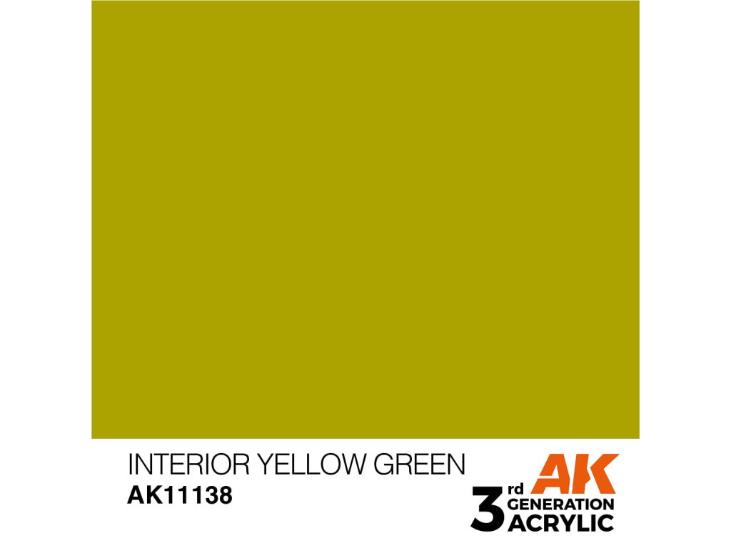 Az AK Interactive sárgászöld akrilfestéke ecsettel és airbrush-rel történő felvitelre alkalmas. A 3. generációs akril modellfestékek (3Gen) az eddigi legkifinomultabb akrilfesték-formuláció. A General Series festékek kiváló fedőképességgel, elképesztő tapadással rendelkeznek, és az új összetétel megakadályozza a fúvóka eltömődését anélkül, hogy hosszadalmas festékkeverésre lenne szükség.Kiegészítő paraméterek