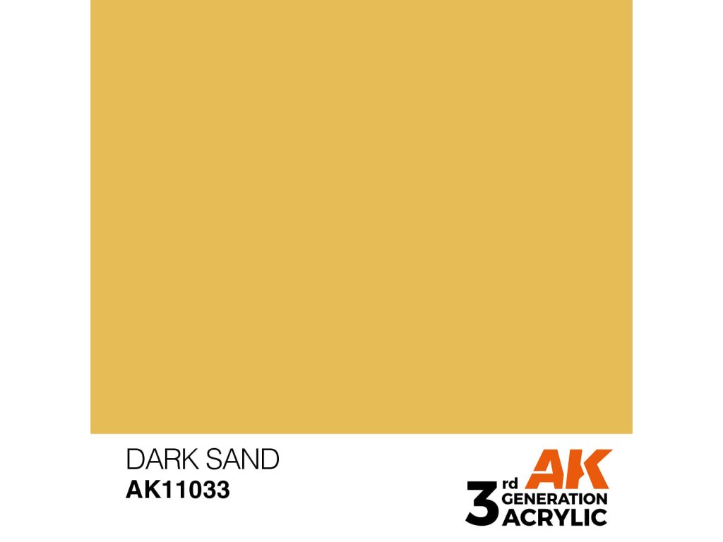 A Dark Sand akrilfesték az AK Interactive-tól ecsettel és ecsettel történő festésre is alkalmas. A 3. generációs akril modellfestékek (3Gen) az eddigi legkifinomultabb akrilfesték-formuláció. A General Series festékek kiváló fedőképességgel, elképesztő tapadással rendelkeznek, és az új összetétel megakadályozza a fúvóka eltömődését anélkül, hogy hosszadalmas festékkeverésre lenne szükség.Kiegészítő paraméterek